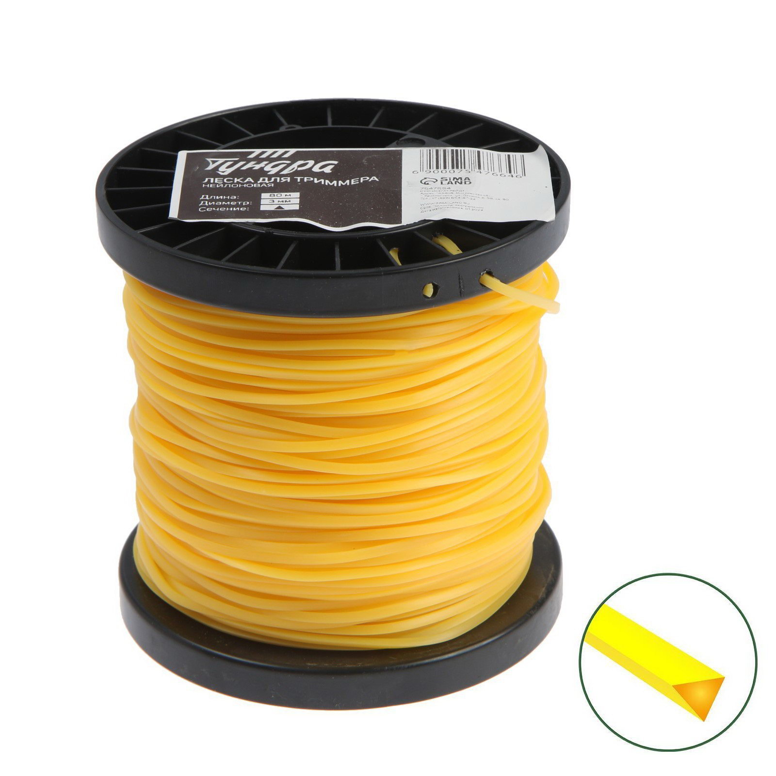 Леска для триммера сечение треугольник, d=3 мм, 80 м, нейлон, 30 см., ТУНДРА, Россия
