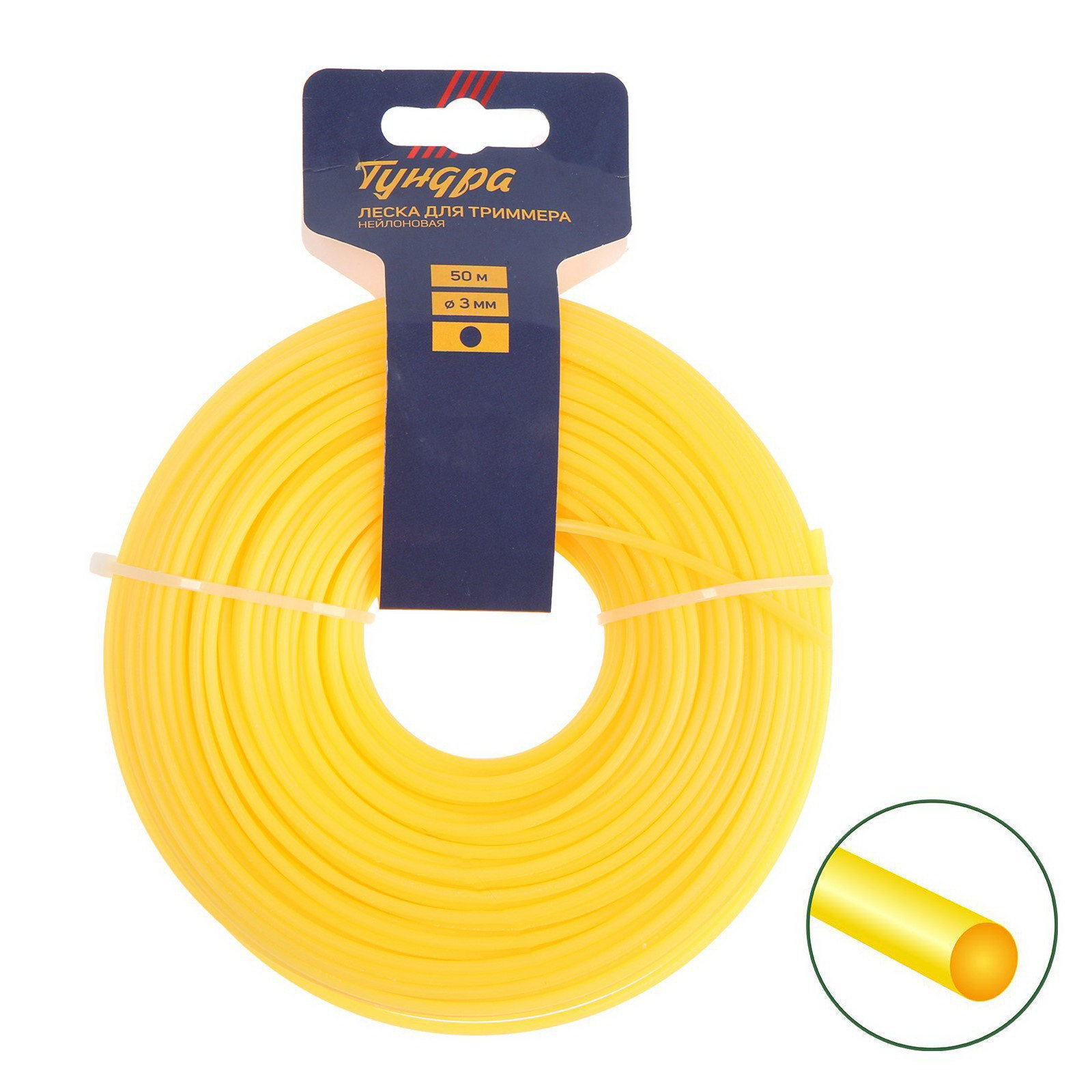 Леска для триммера сечение круг, d=3 мм, 50 м, нейлон, 30 см., ТУНДРА, Россия