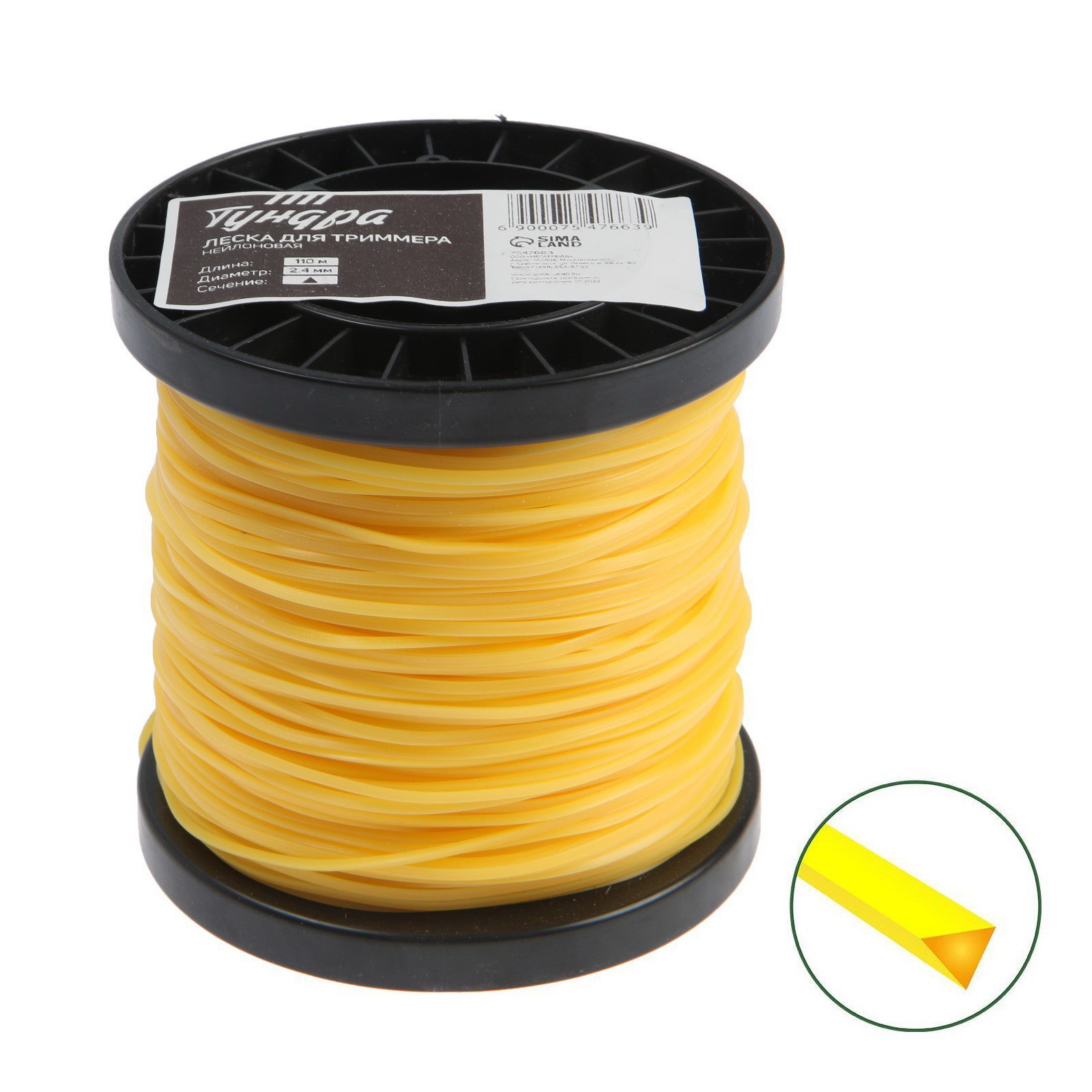 Леска для триммера сечение треугольник, d=2.4 мм, 110 м, нейлон, 24 см., ТУНДРА, Россия