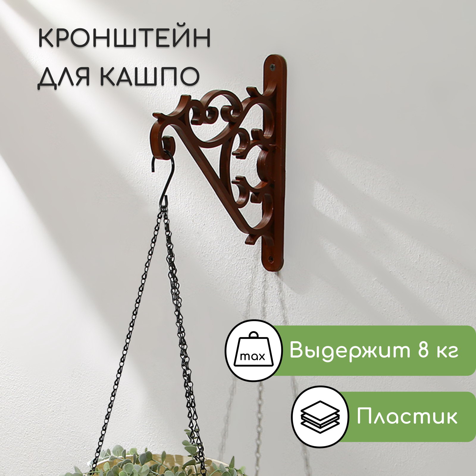 Кронштейн для подвесных кашпо, пластик, цвет шоколад, Беларусь
