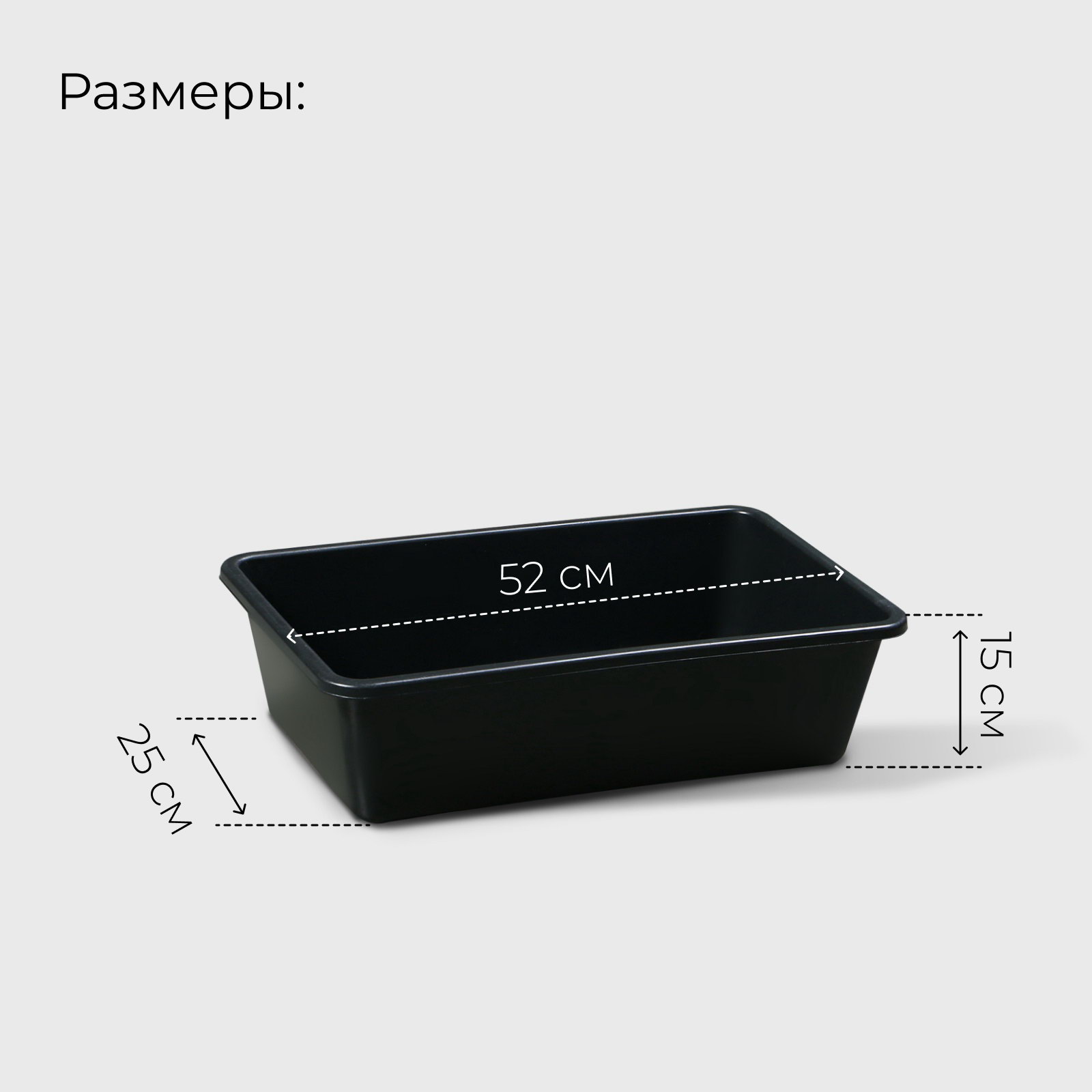 Размер упаковки: 33 x 15 x 51.5 см. Температурное ограничение: Нет Вид: Таз tnved: 3926909700 Форма: Прямоугольник Цвет: Чёрный Пластиковая ёмкость это идеальное решение для разнообразных строительных и хозяйственных задач. Её прямоугольная форма позволяет эффективно использовать пространство, а прочный материал обеспечивает долговечность в эксплуатации. Такой таз станет незаменимым помощником на стройке или в саду. Ключевые преимущества