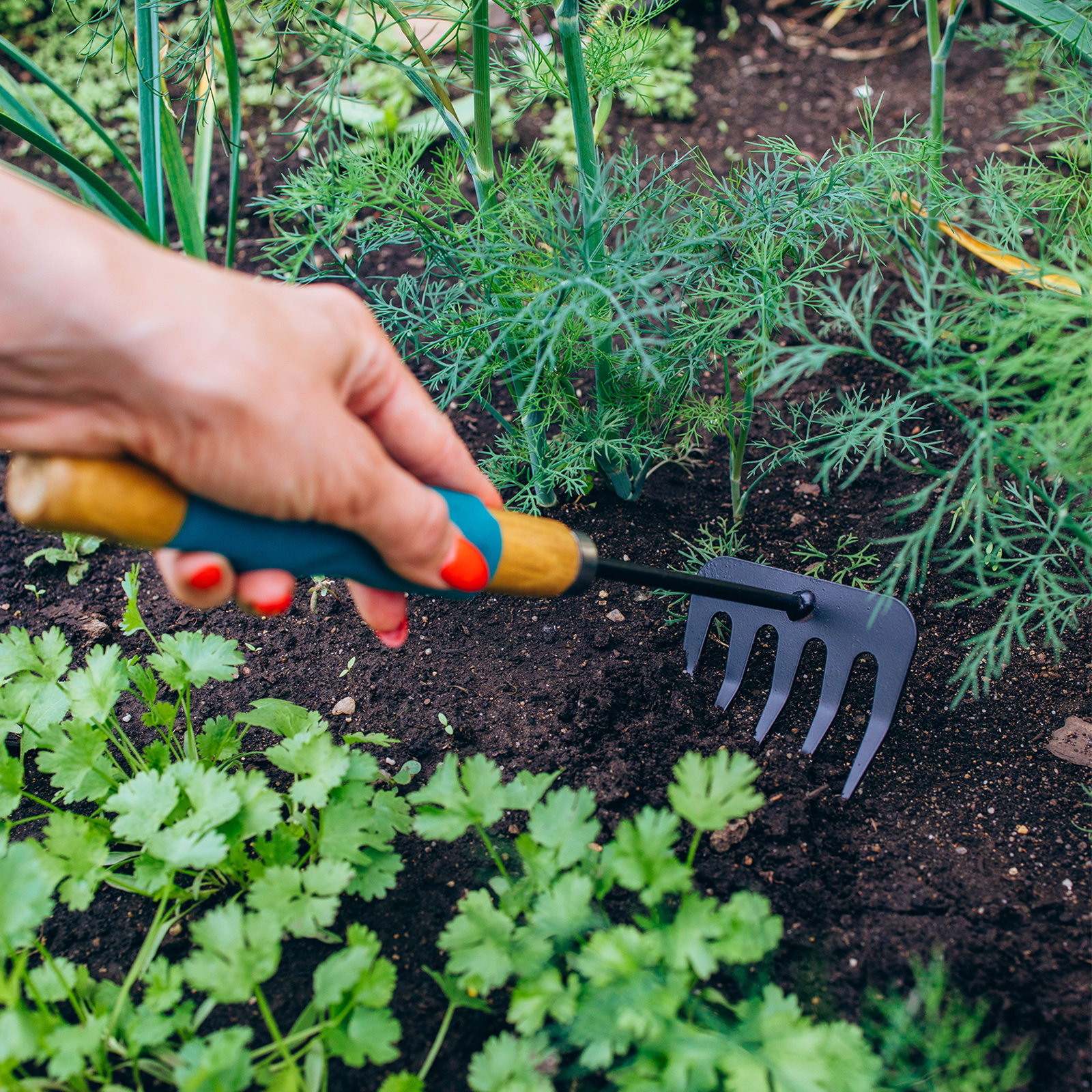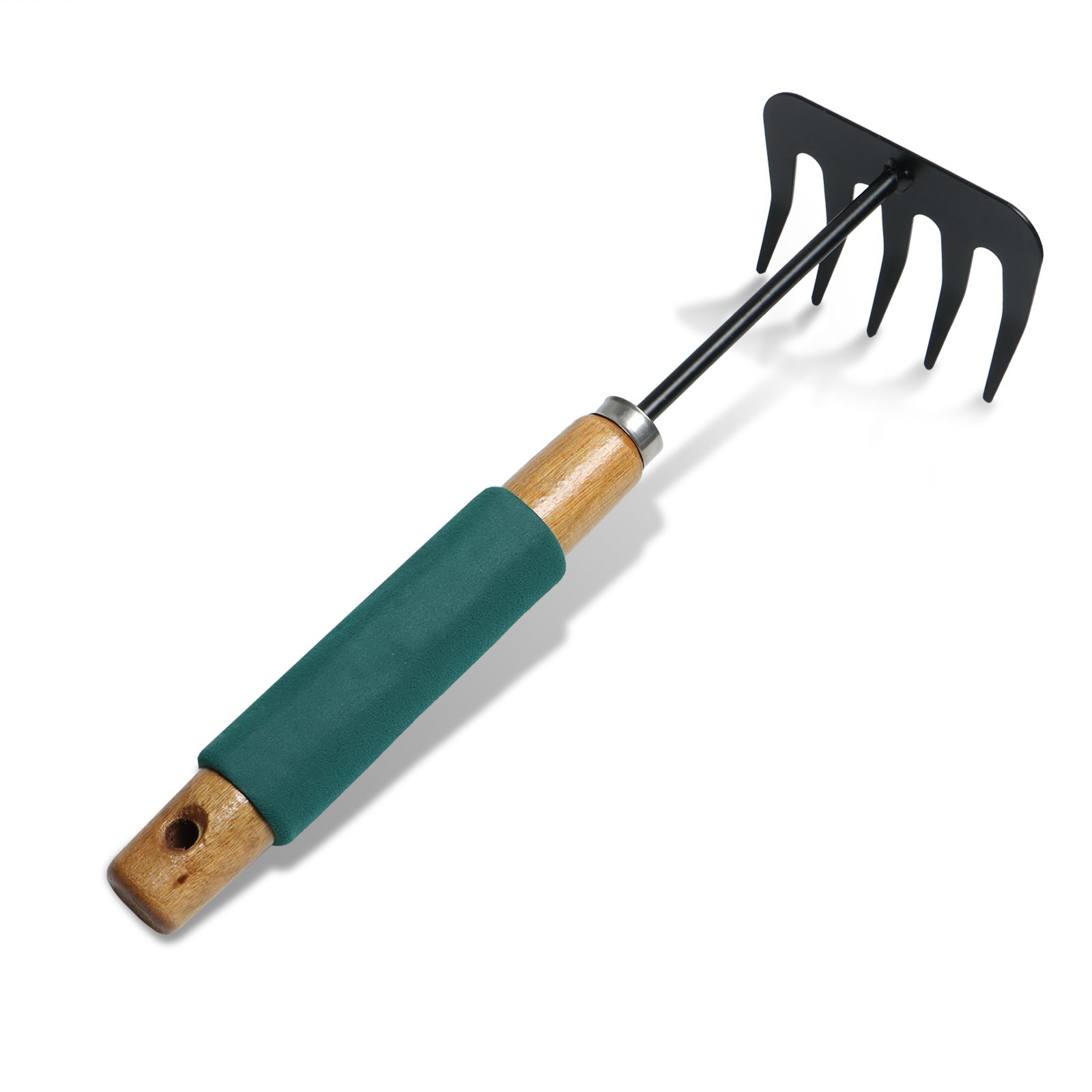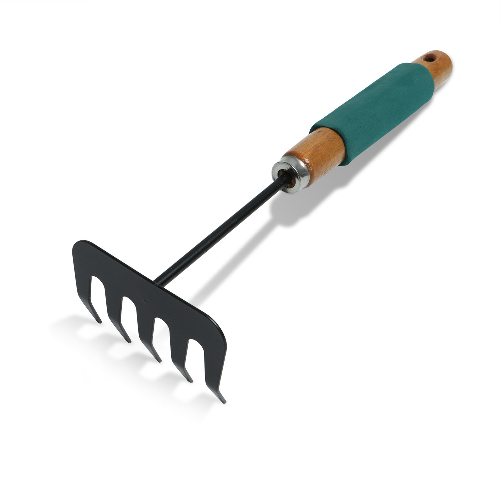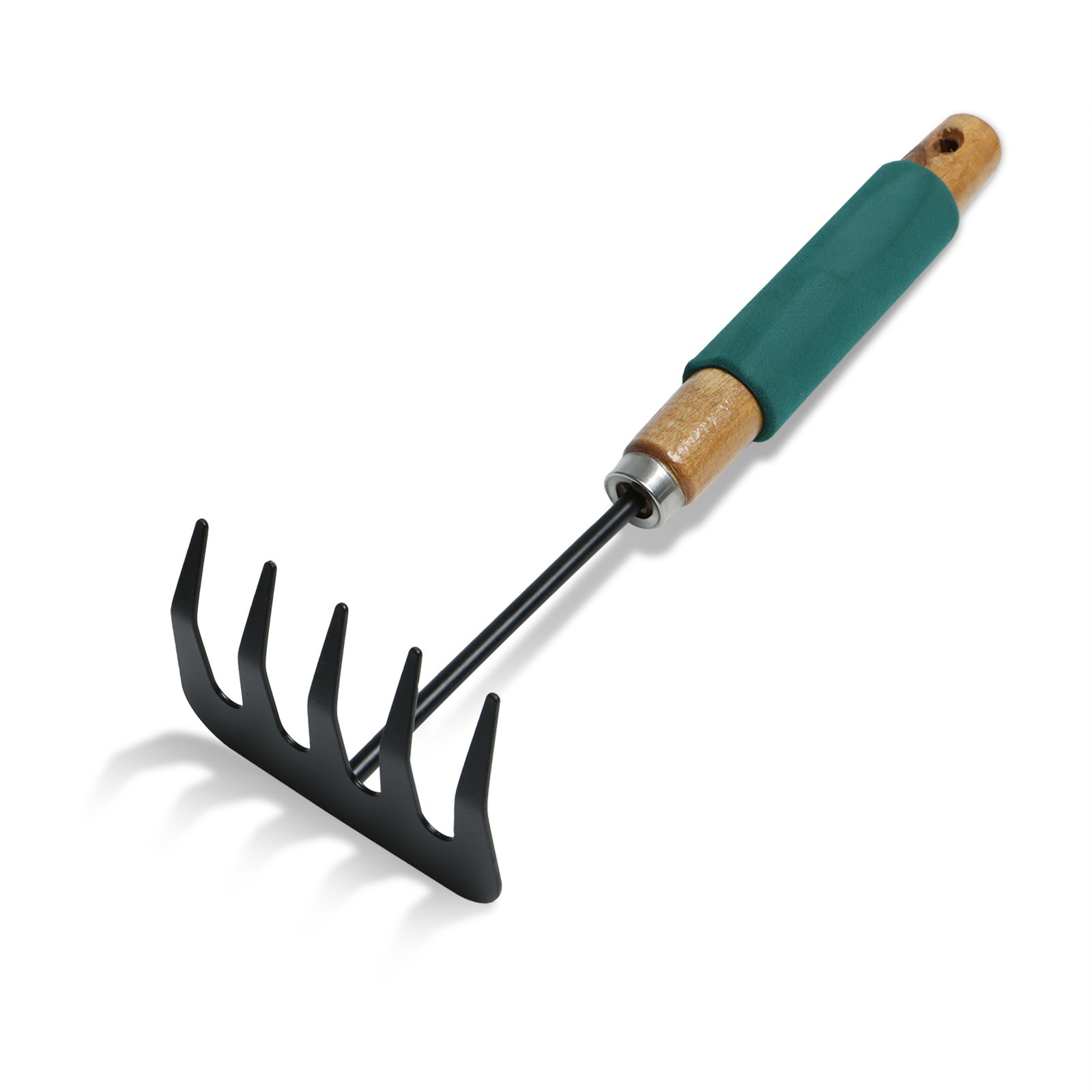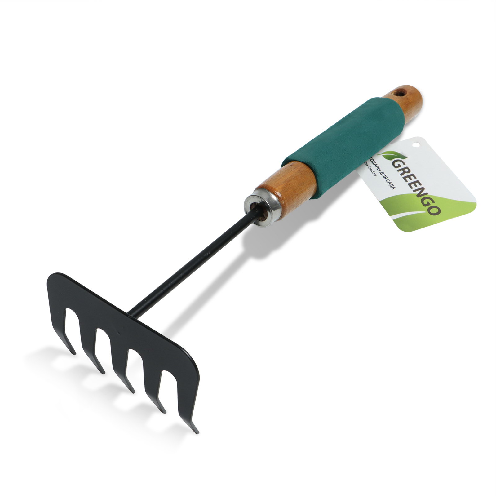 Грабли малые, прямые, 5 зубцов, длина 29 см, металл, деревянная ручка с поролоном, 9x29.5x7.5 см., Greengo, Китай