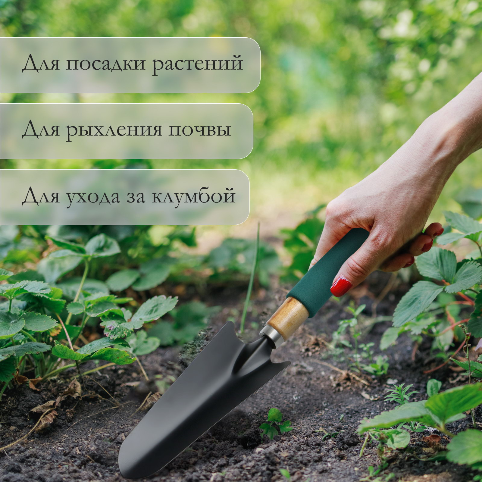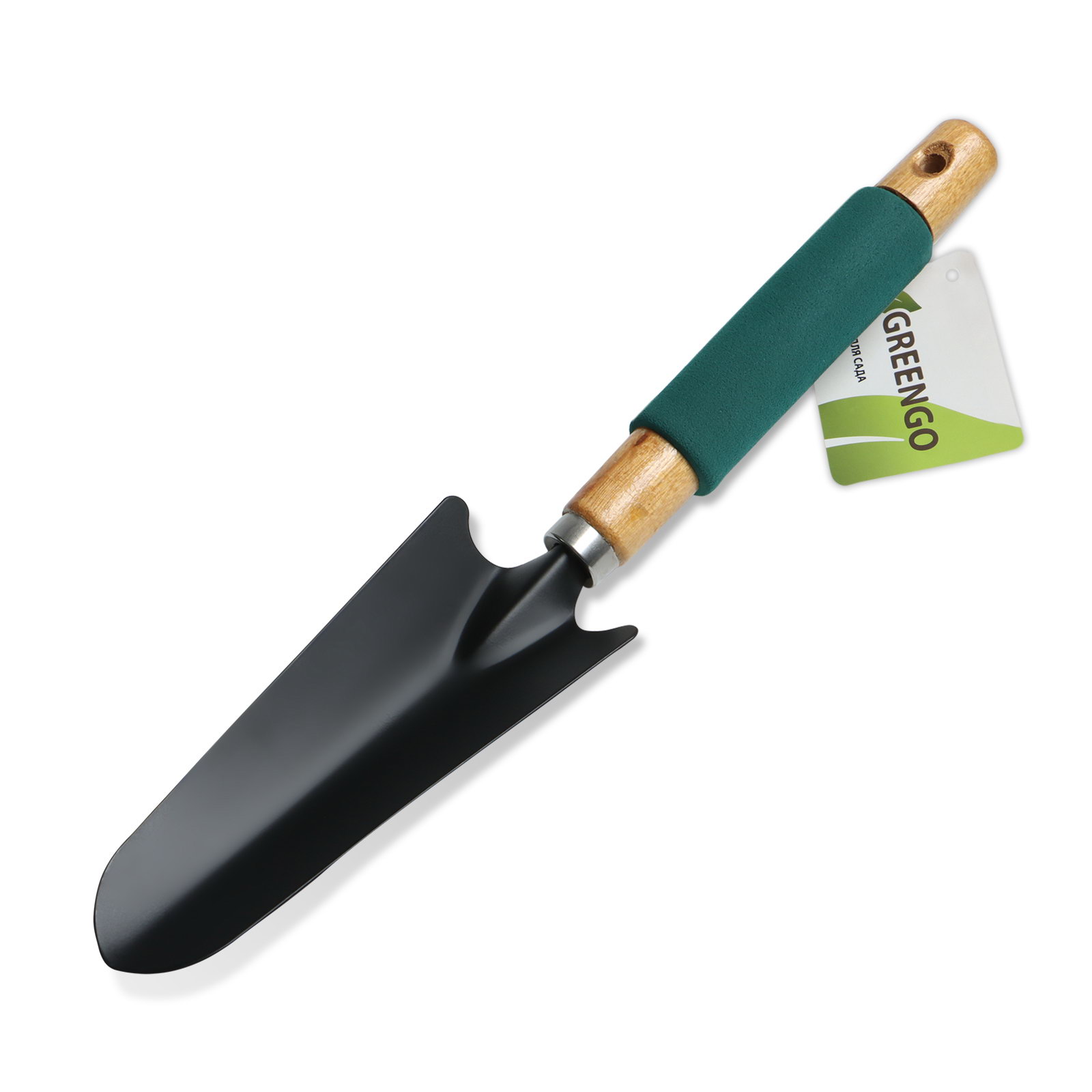 Совок посадочный длина 33.5 см, ширина 6.5 см, деревянная ручка с поролоном, 6.5x34x3.5 см., Greengo, Китай