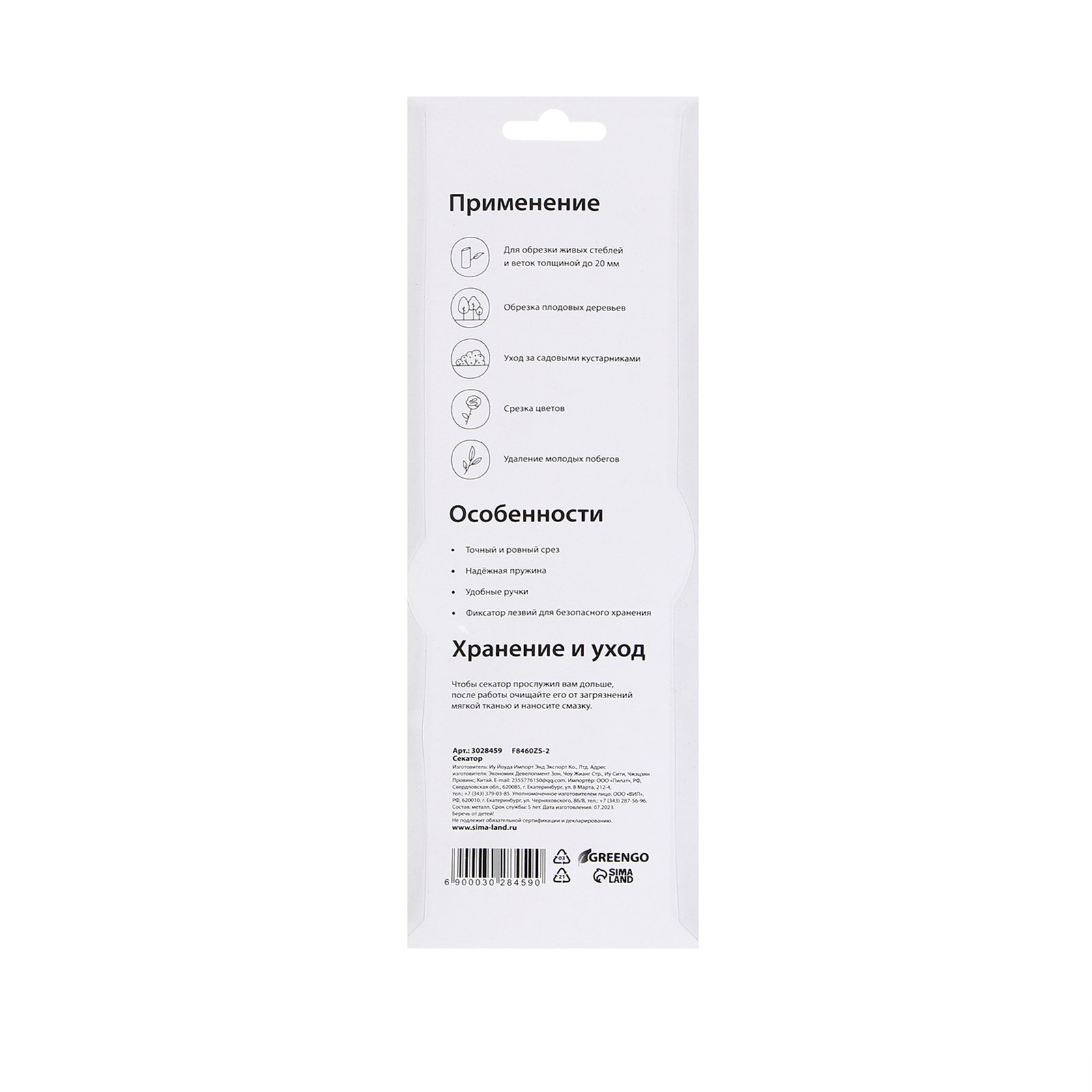 Секатор плоскостной, 8", 5x20.5x2 см., Greengo, Китай