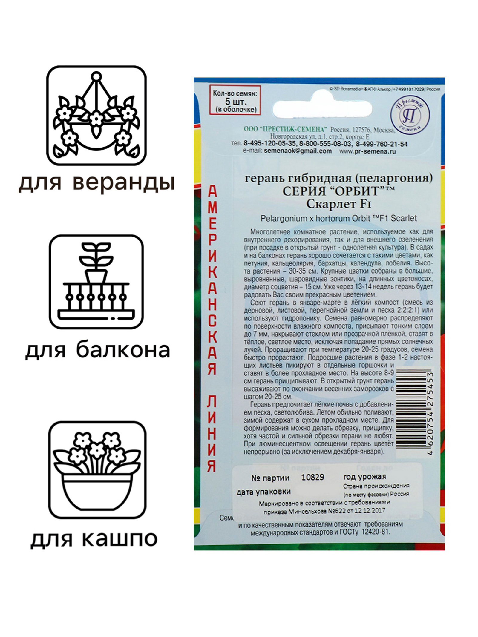 Семена комнатных цветов Герань "Скарлет", F1, 5 шт., Престиж семена, РОССИЯ