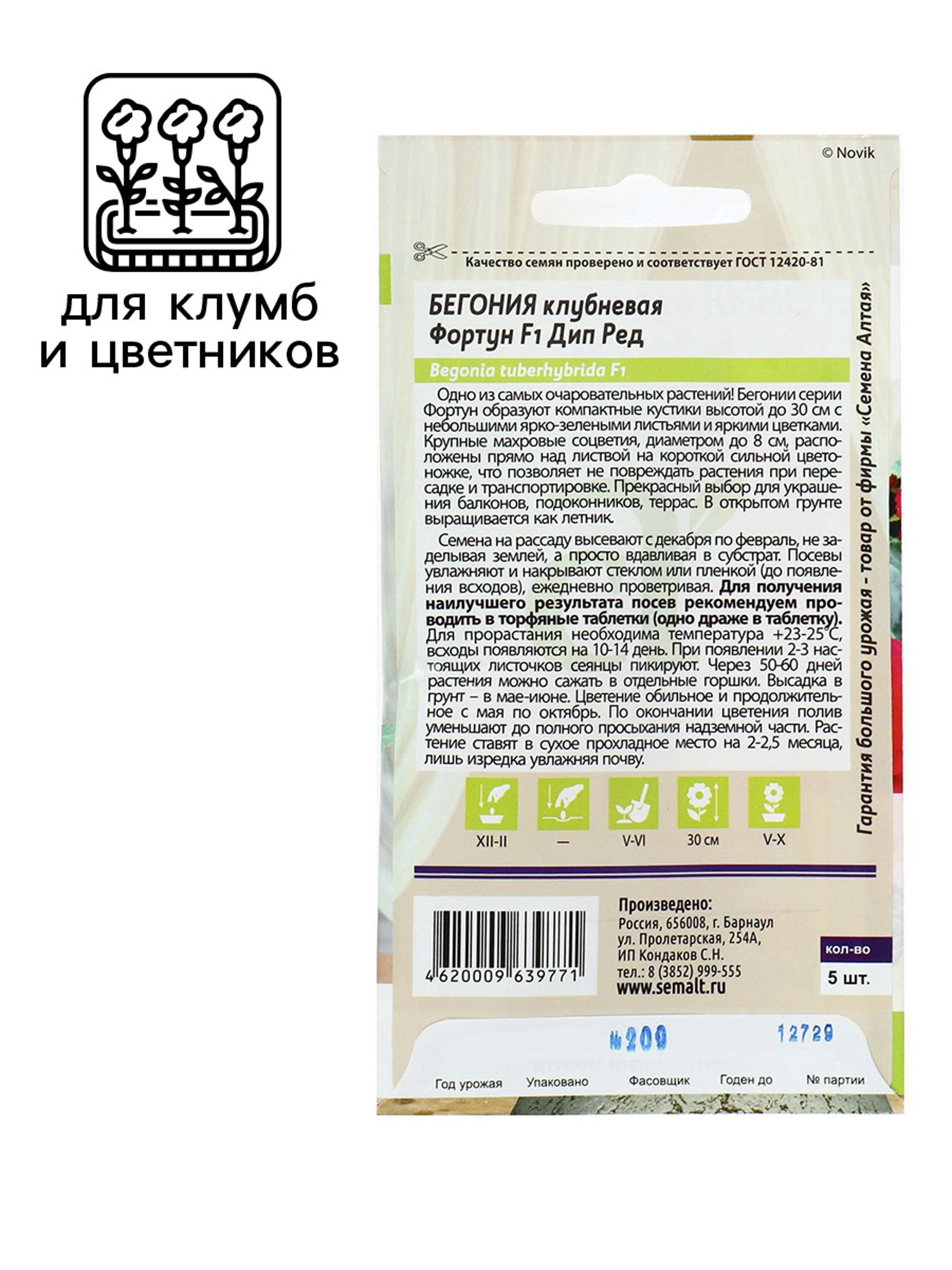 Семена комнатных цветов Бегония "Дип Ред", ц/п, 4 шт, Семена Алтая, Россия