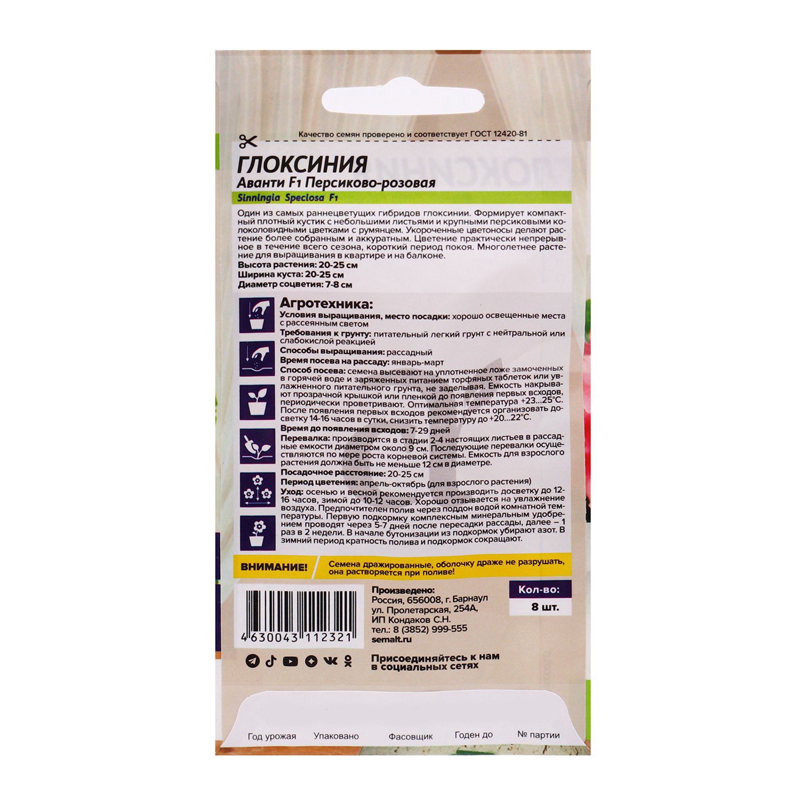 Семена комнатных цветов Глоксиния Аванти "Персиково-розовая", ц/п, F1, 8 шт., Семена Алтая, Россия