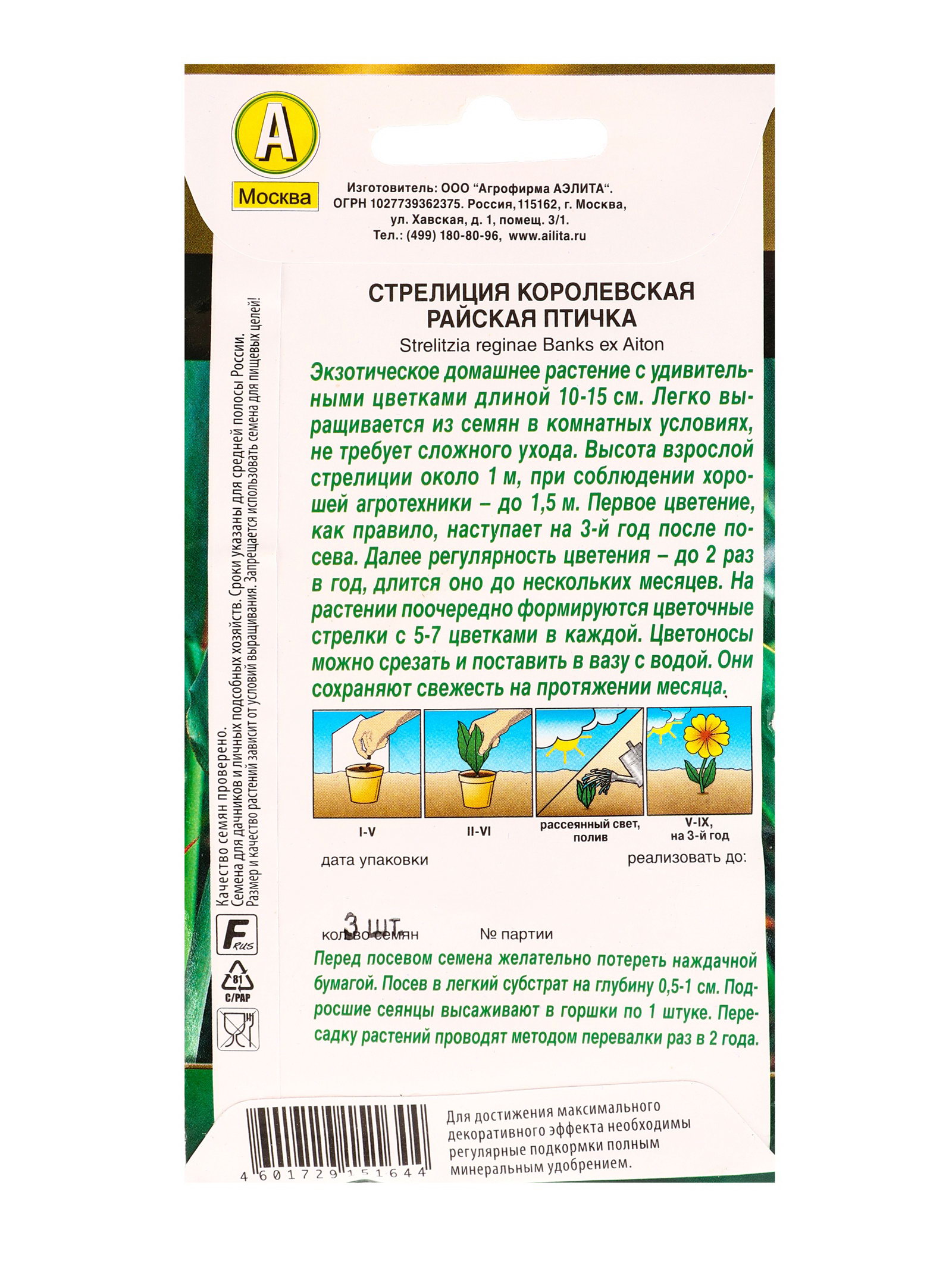 Семена цветов Стрелиция королевская Райская птичка Мн Золотая серия, Ц/П,3 шт., Агрофирма АЭЛИТА, Нидерланды