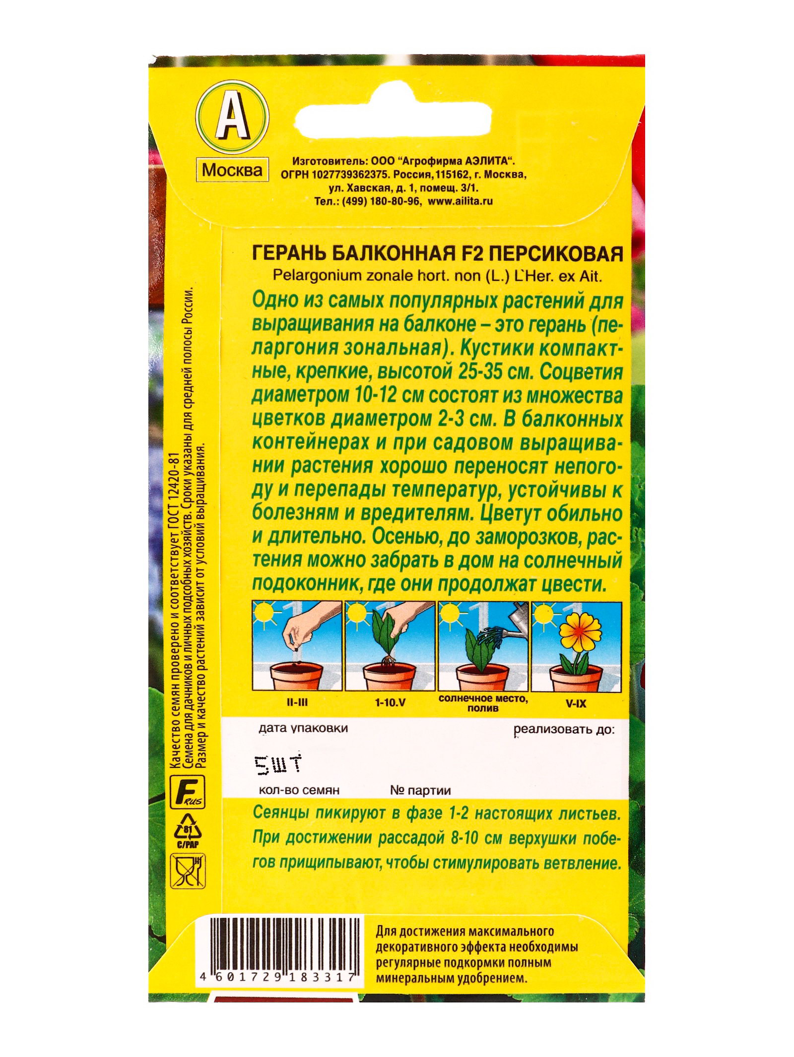 Семена цветов Герань Балконная персиковая F2 Мн Цветущий балкон, Ц/П,5 шт., Агрофирма АЭЛИТА, Нидерланды