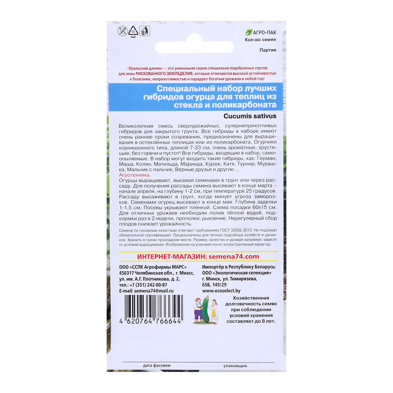 Семена Набор "Закрытого грунта", 12 шт, Уральский Дачник, Россия