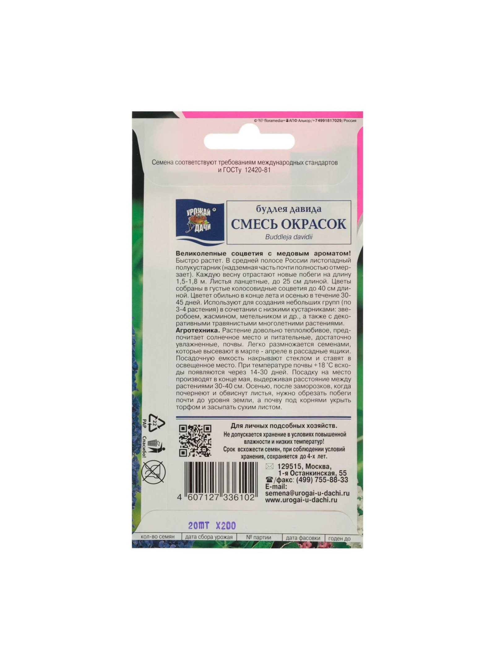 Набор семян Будлея "Давида", 5 шт., 9x17x1 см., Мой выбор, Россия