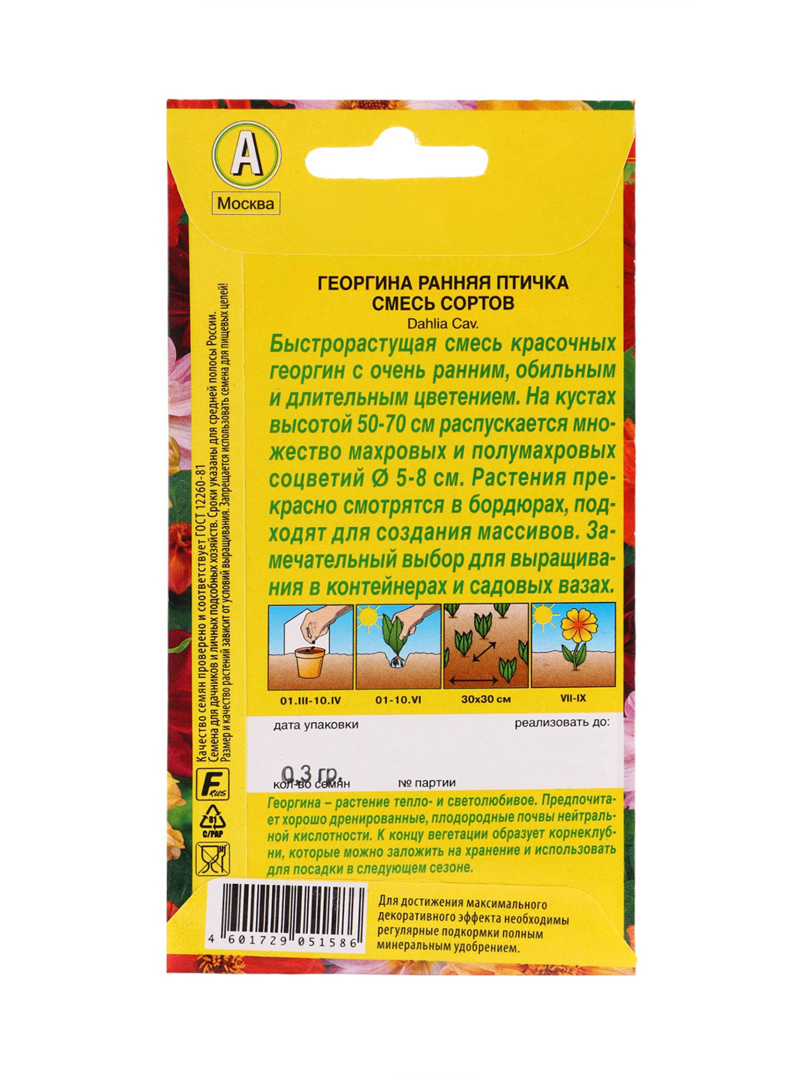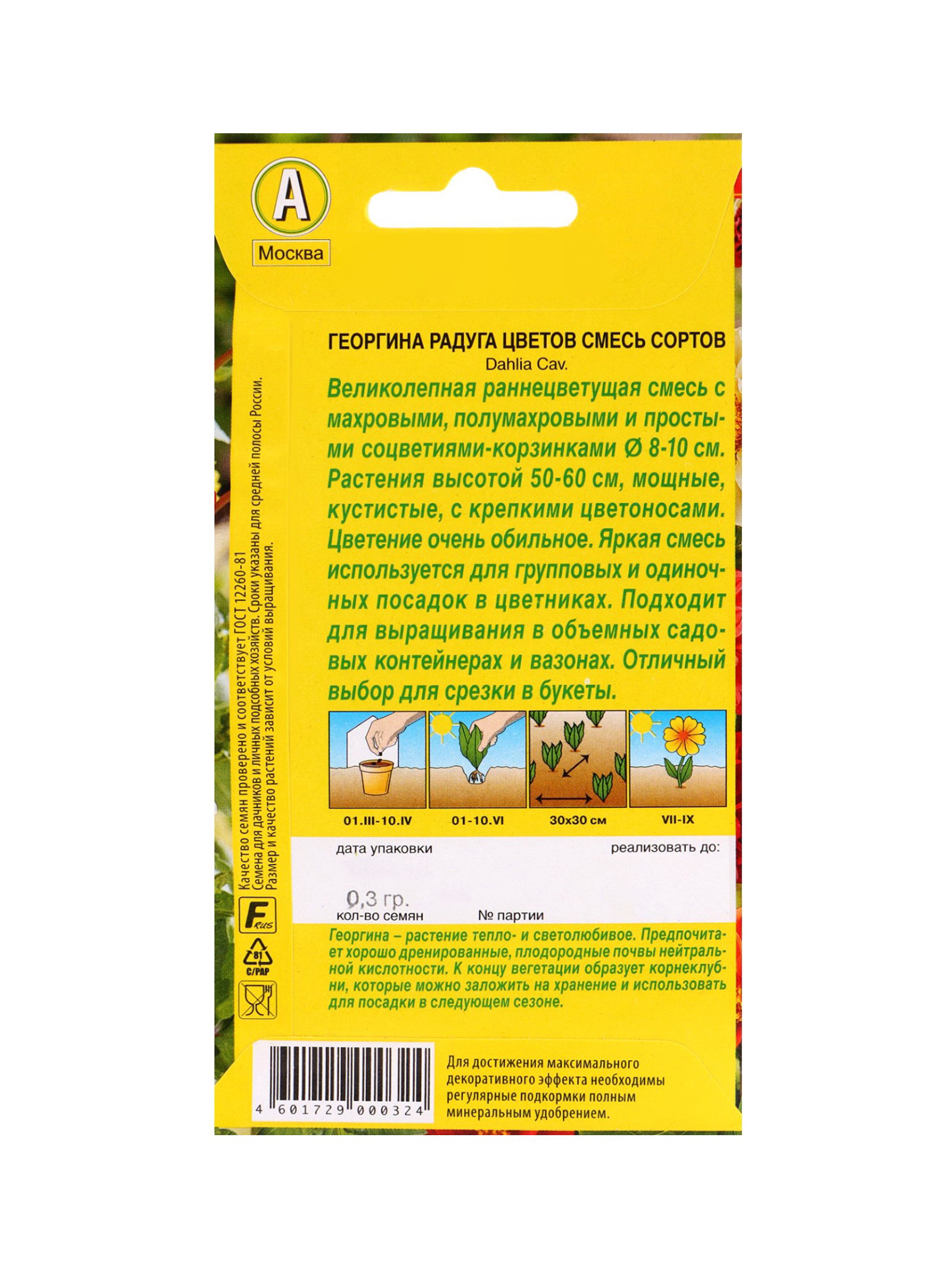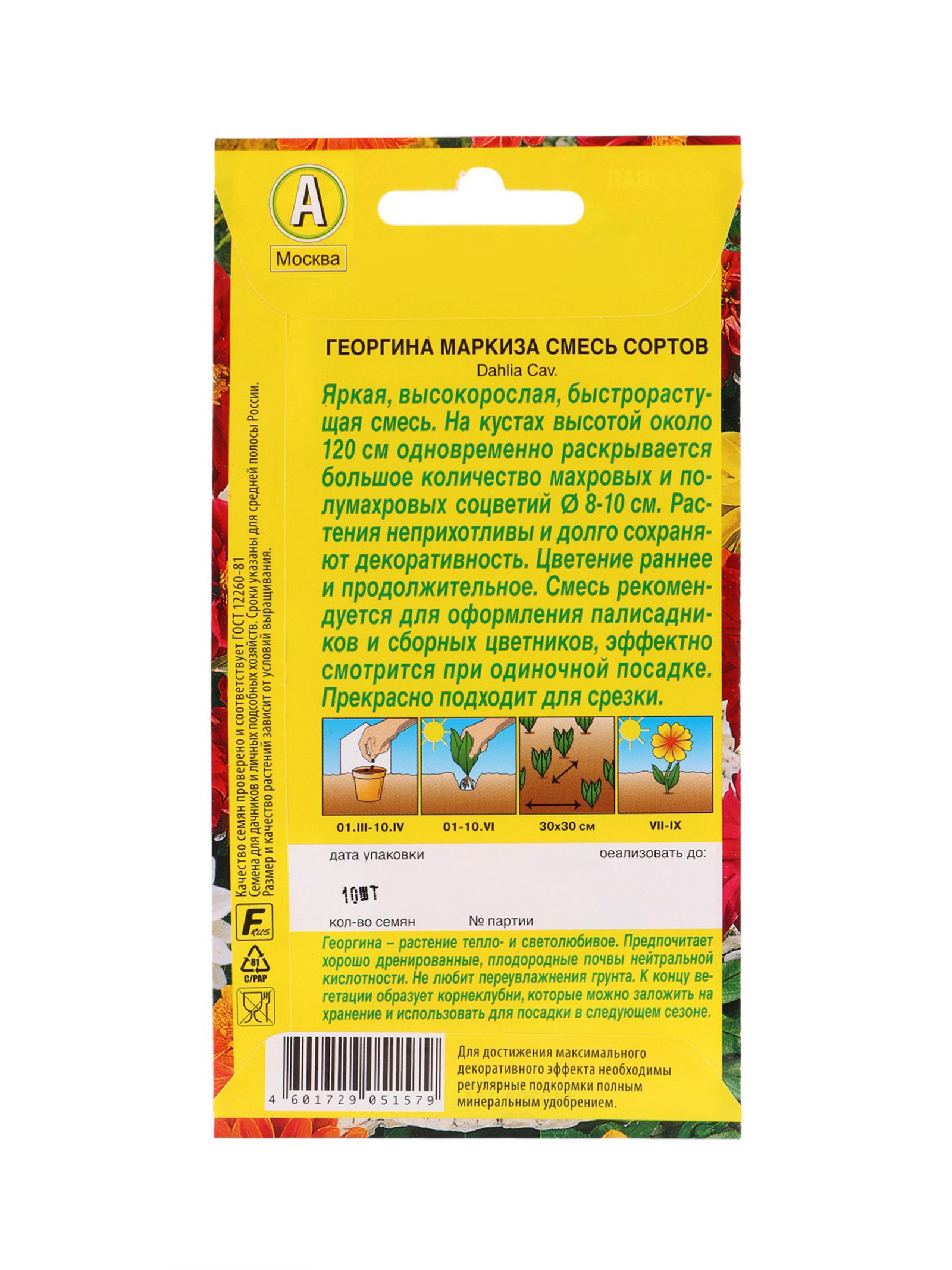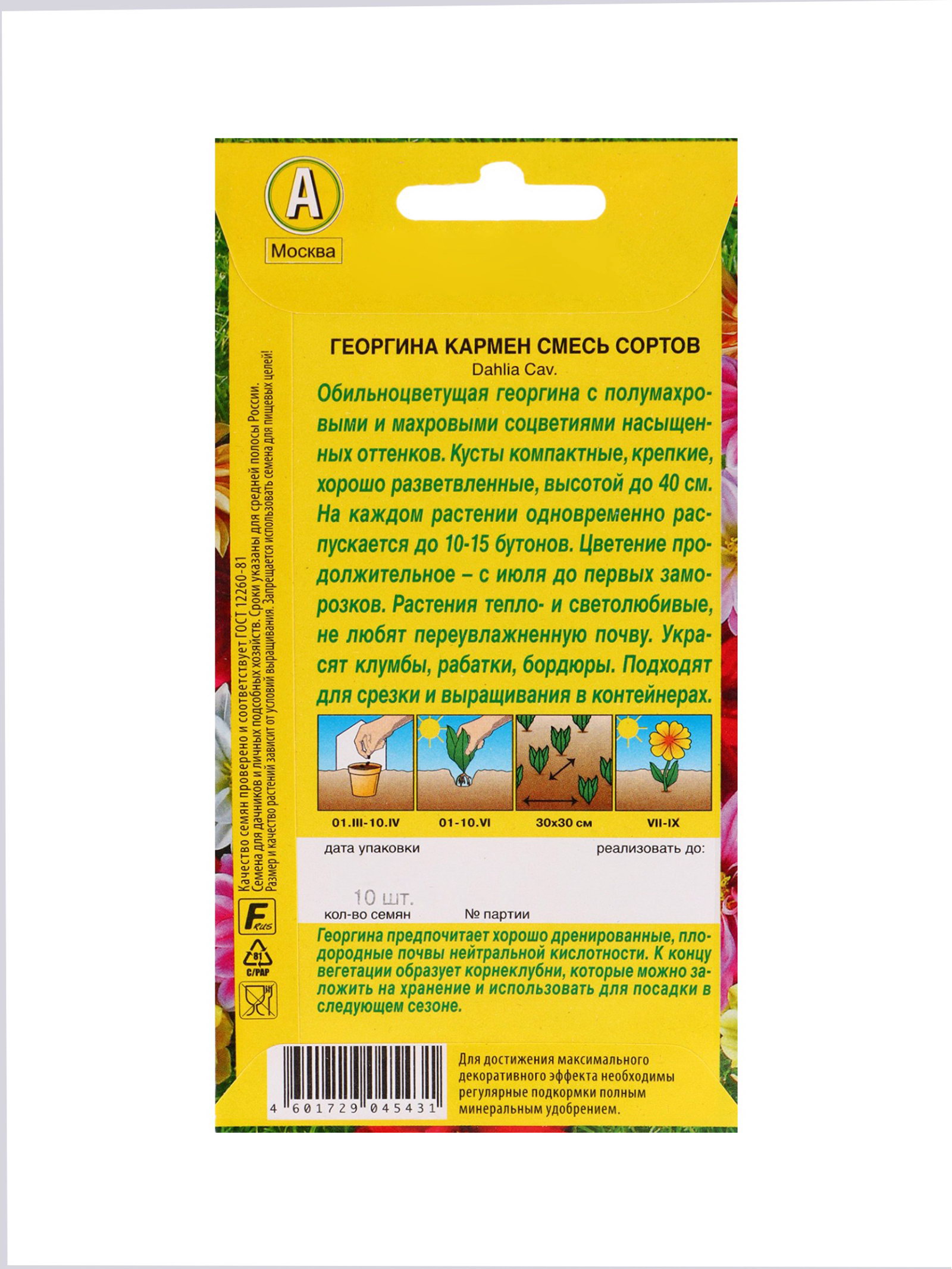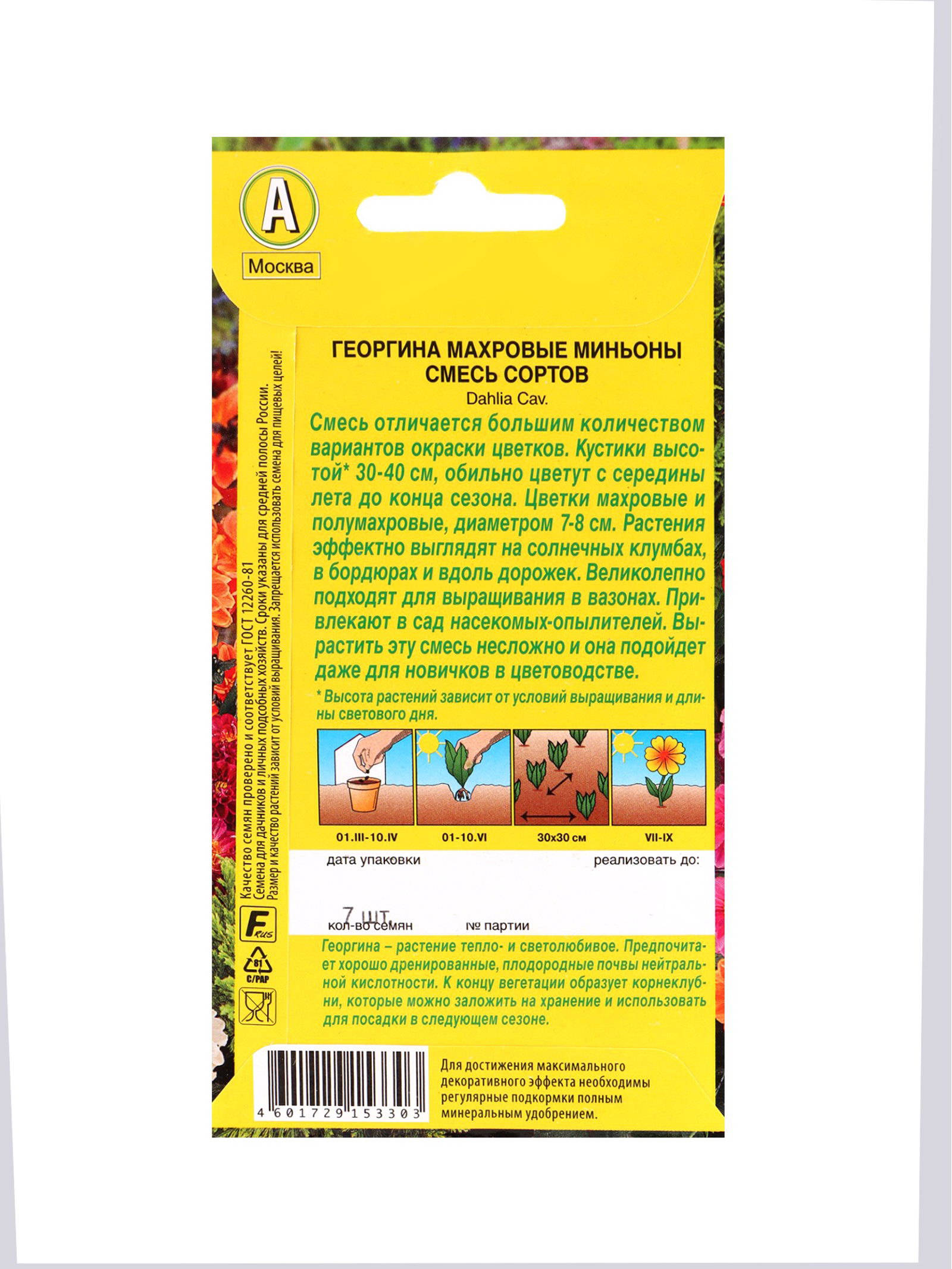 Набор семян цветов Георгина, махровая, низкорослая, 15x17x5 см., Мой выбор, Россия
