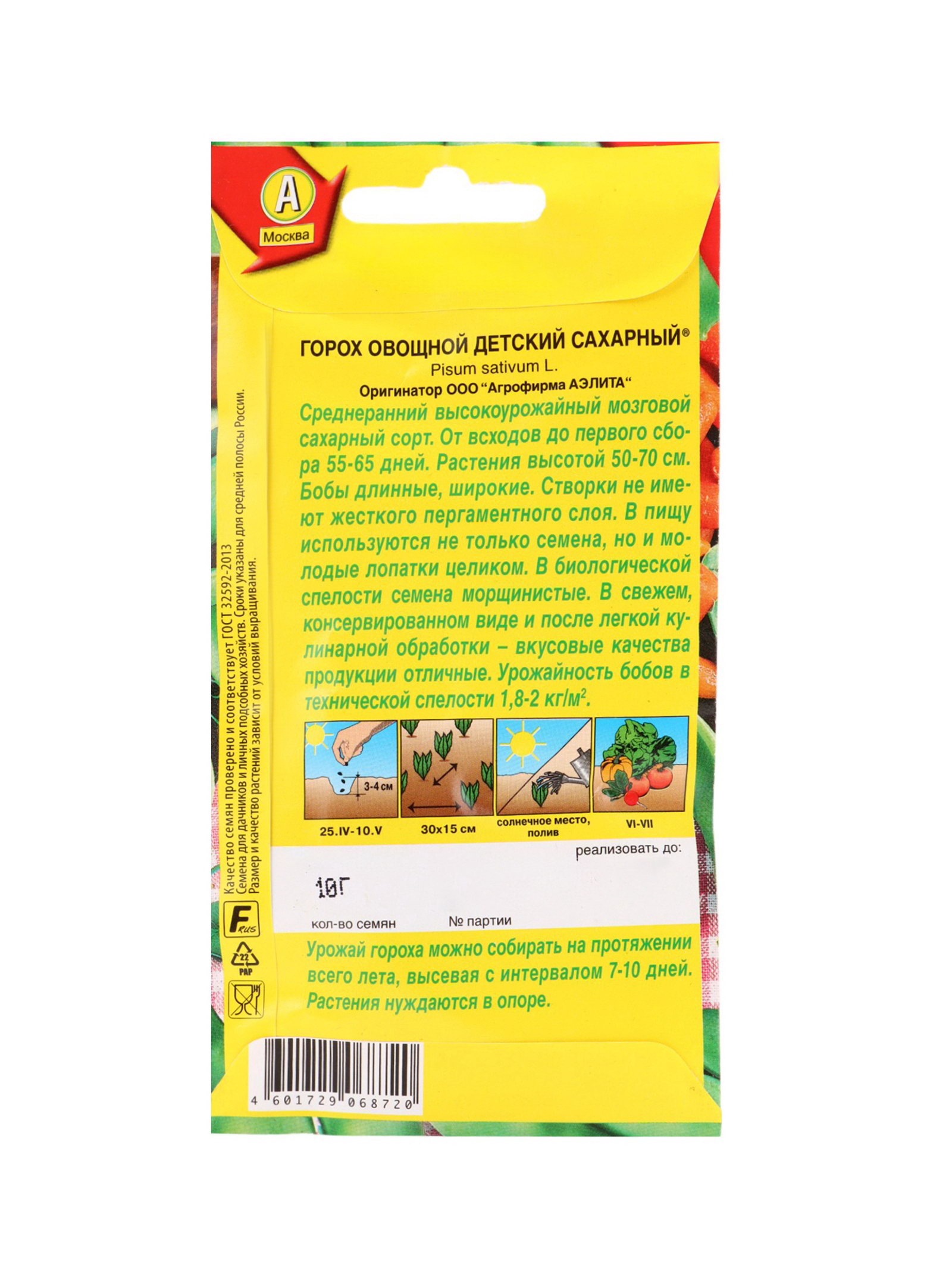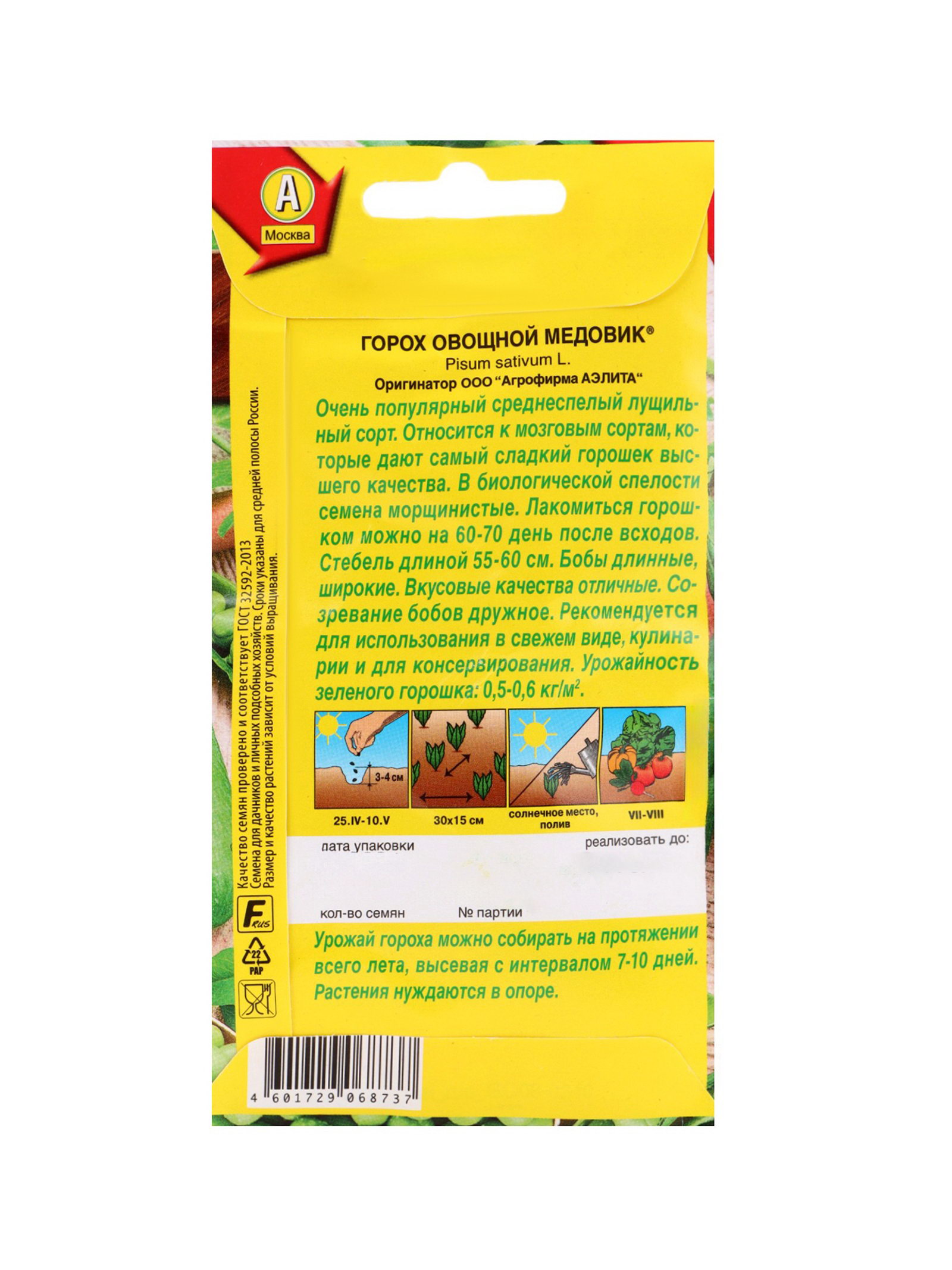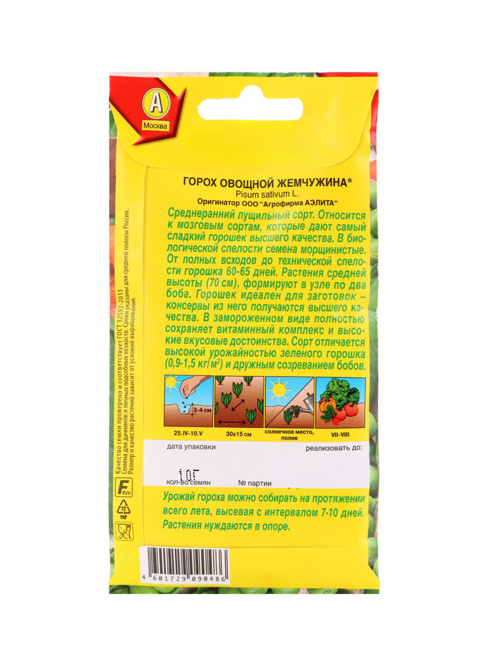 Набор семян Горох, 3 пакетика, "Аэлита", 15x17x5 см., Мой выбор, Россия