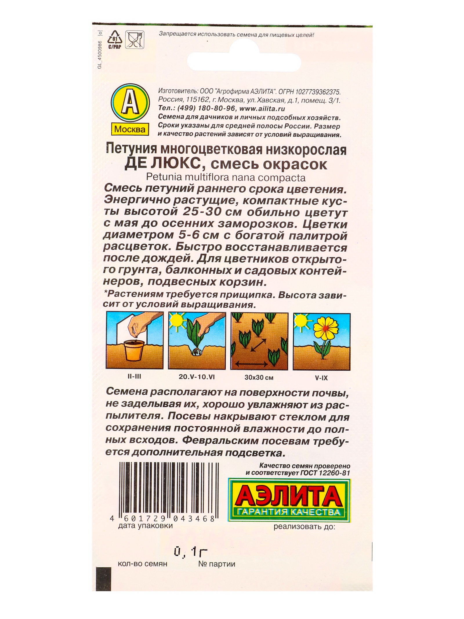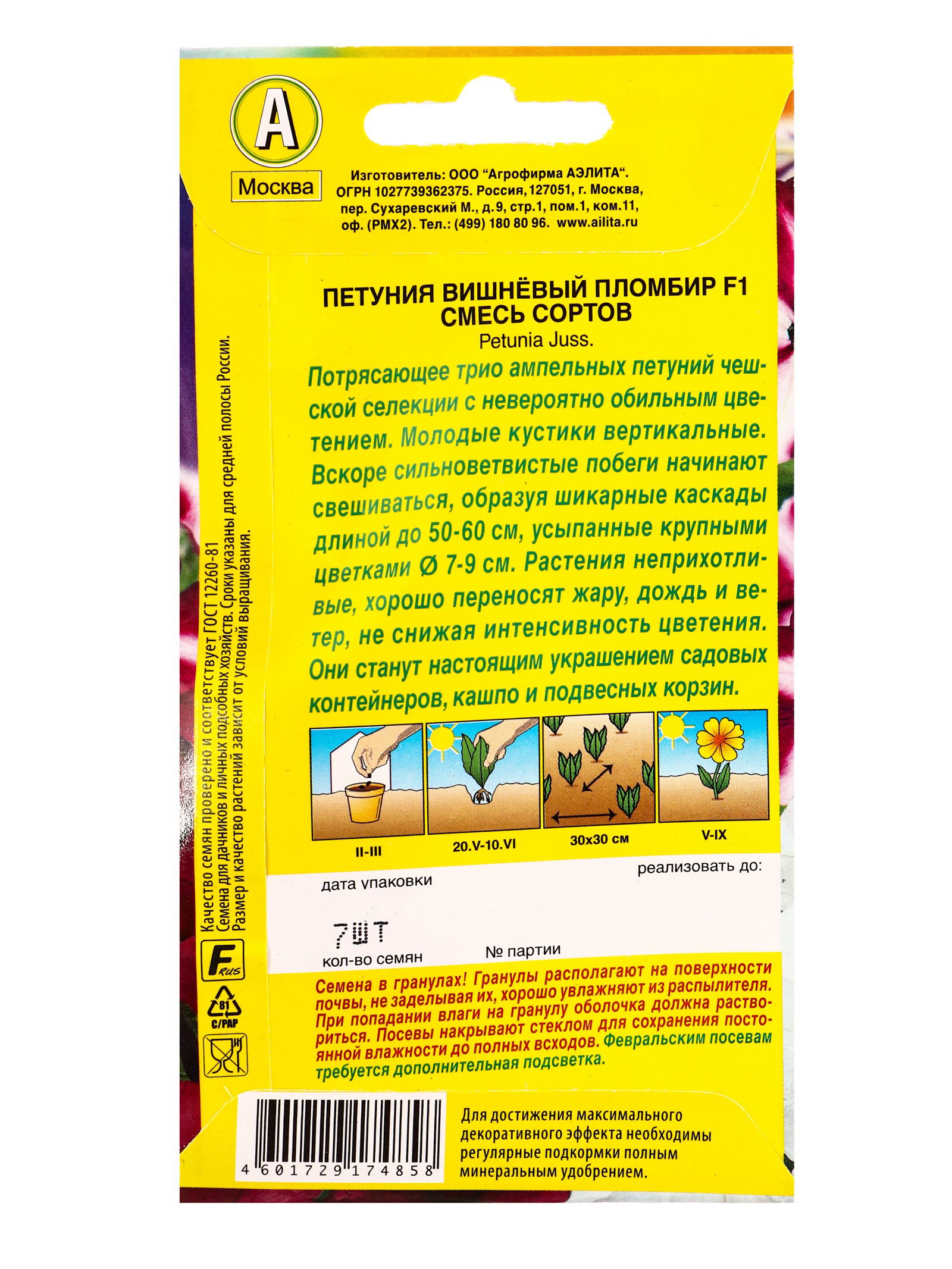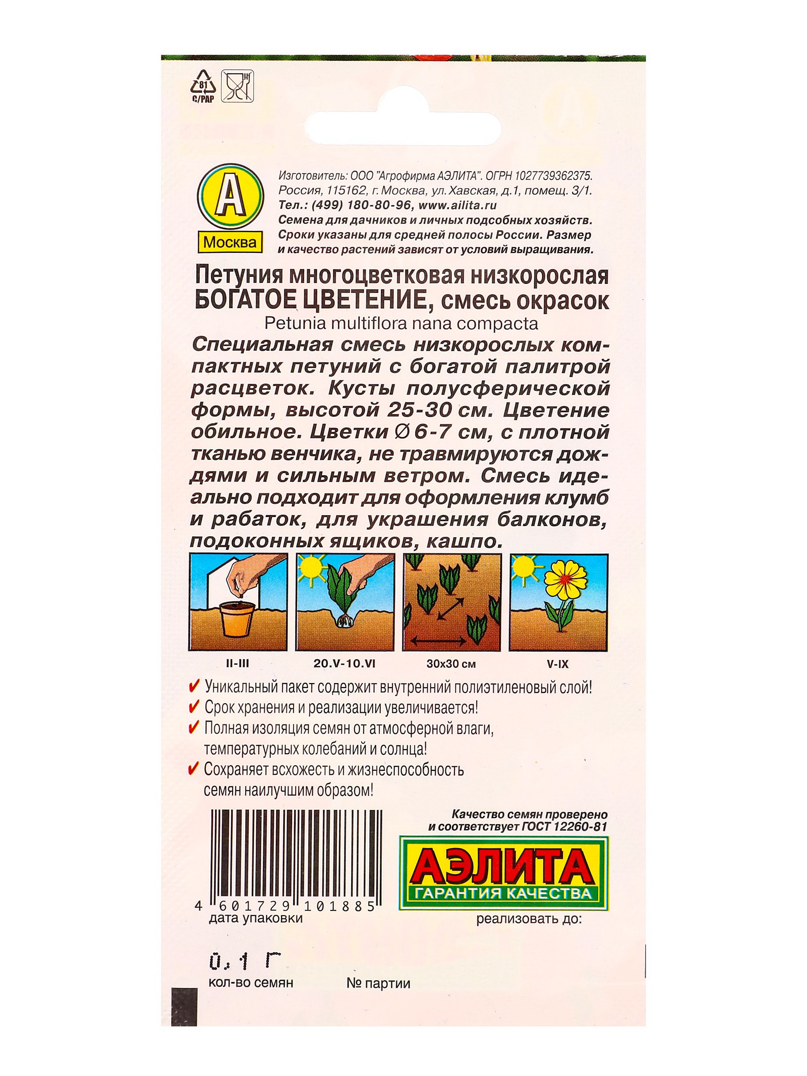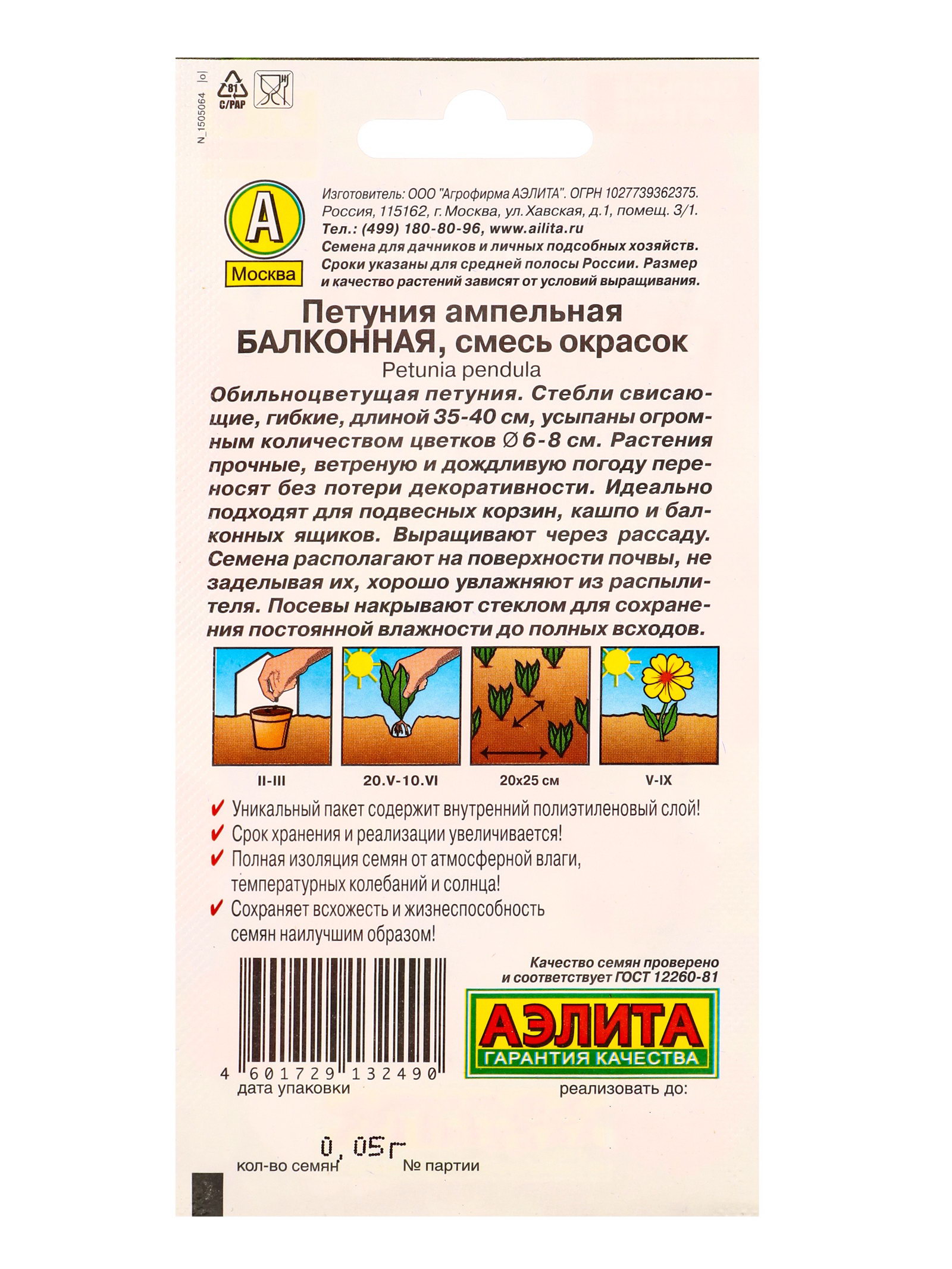 Размер упаковки: 8 x 1.5 x 18 см. tnved: 1209999900 Запрет реализации по сегментам: 00000000578 Место выращивания: Подоконник, балкон Вид: Петуния | ||