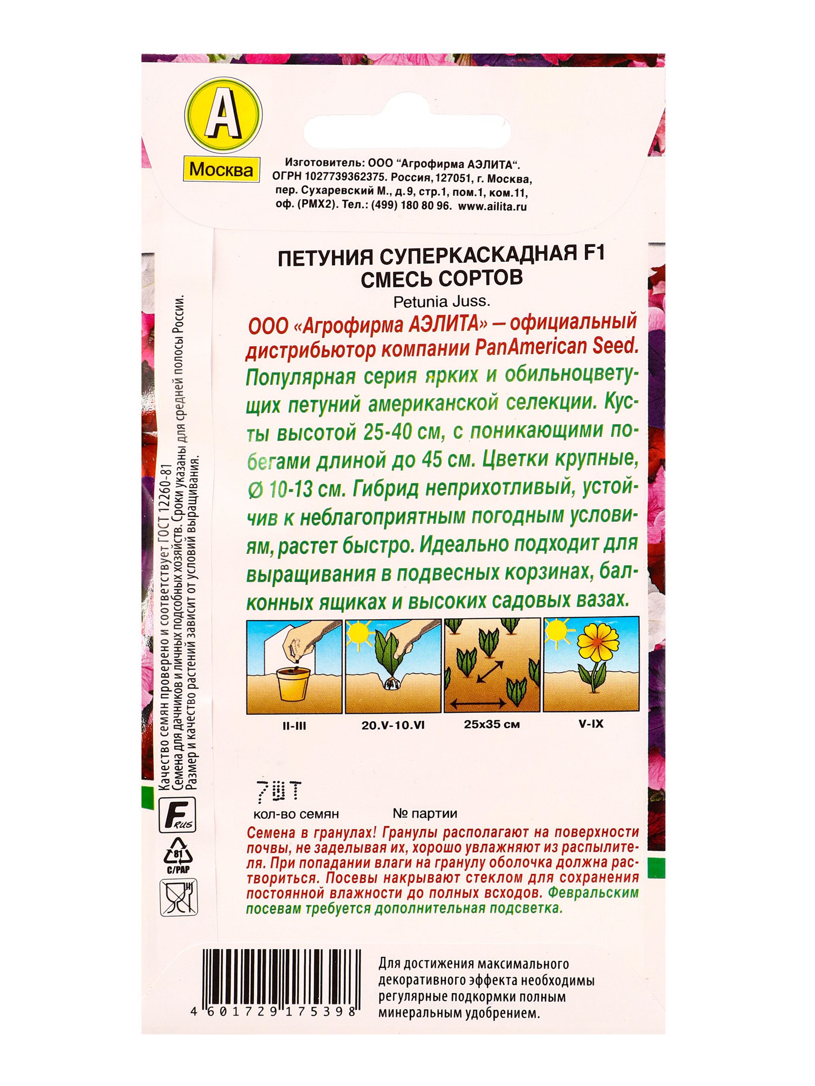 Набор семян цветов Петунии ампельной каскадной, 15x17x5 см., Мой выбор, Россия