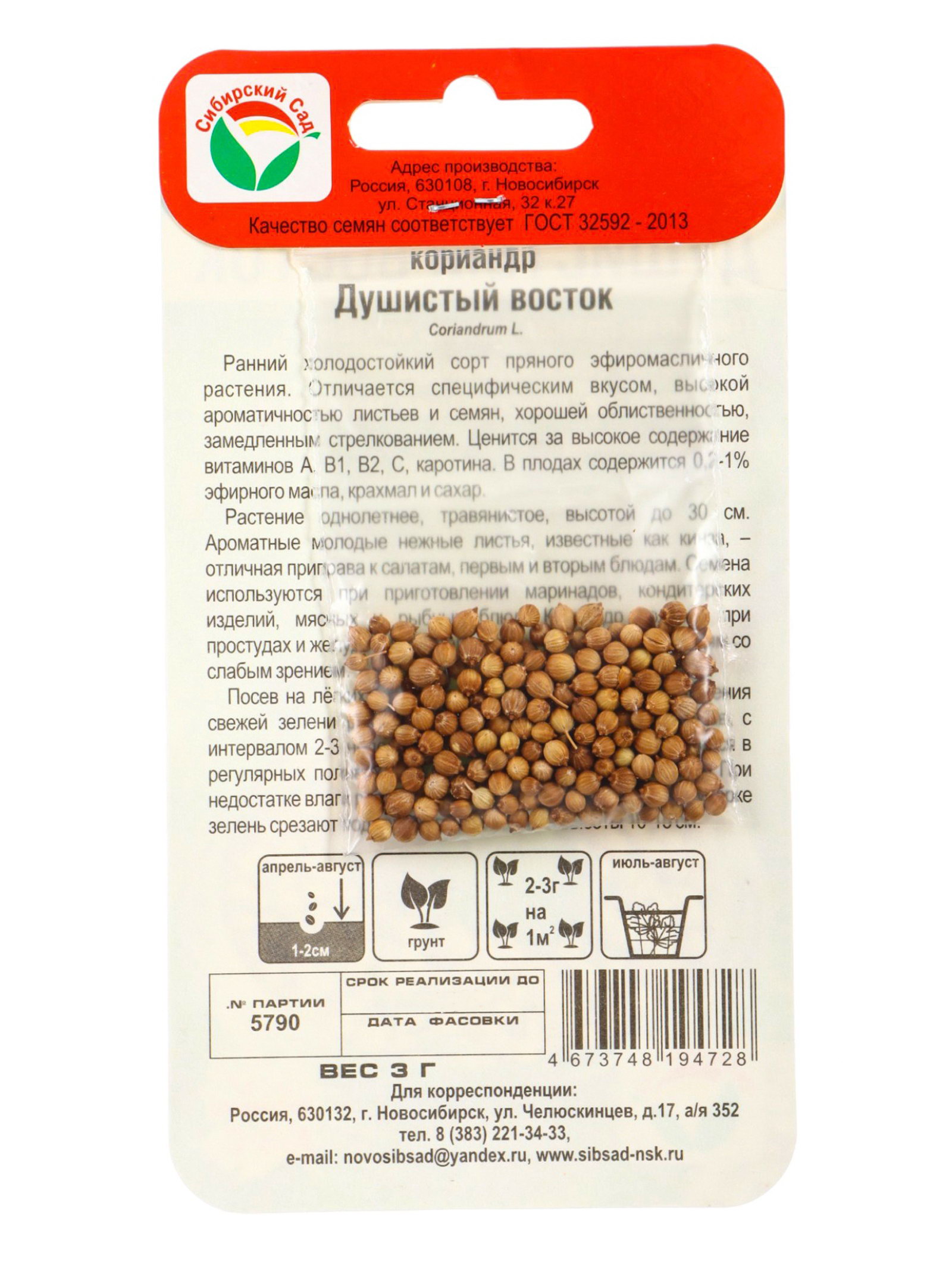 Размер упаковки: 8 x 0.3 x 15 см. tnved: 1209999900 Запрет реализации по сегментам: 00000000578 Вид: Кориандр Место выращивания: Открытый грунт | ||