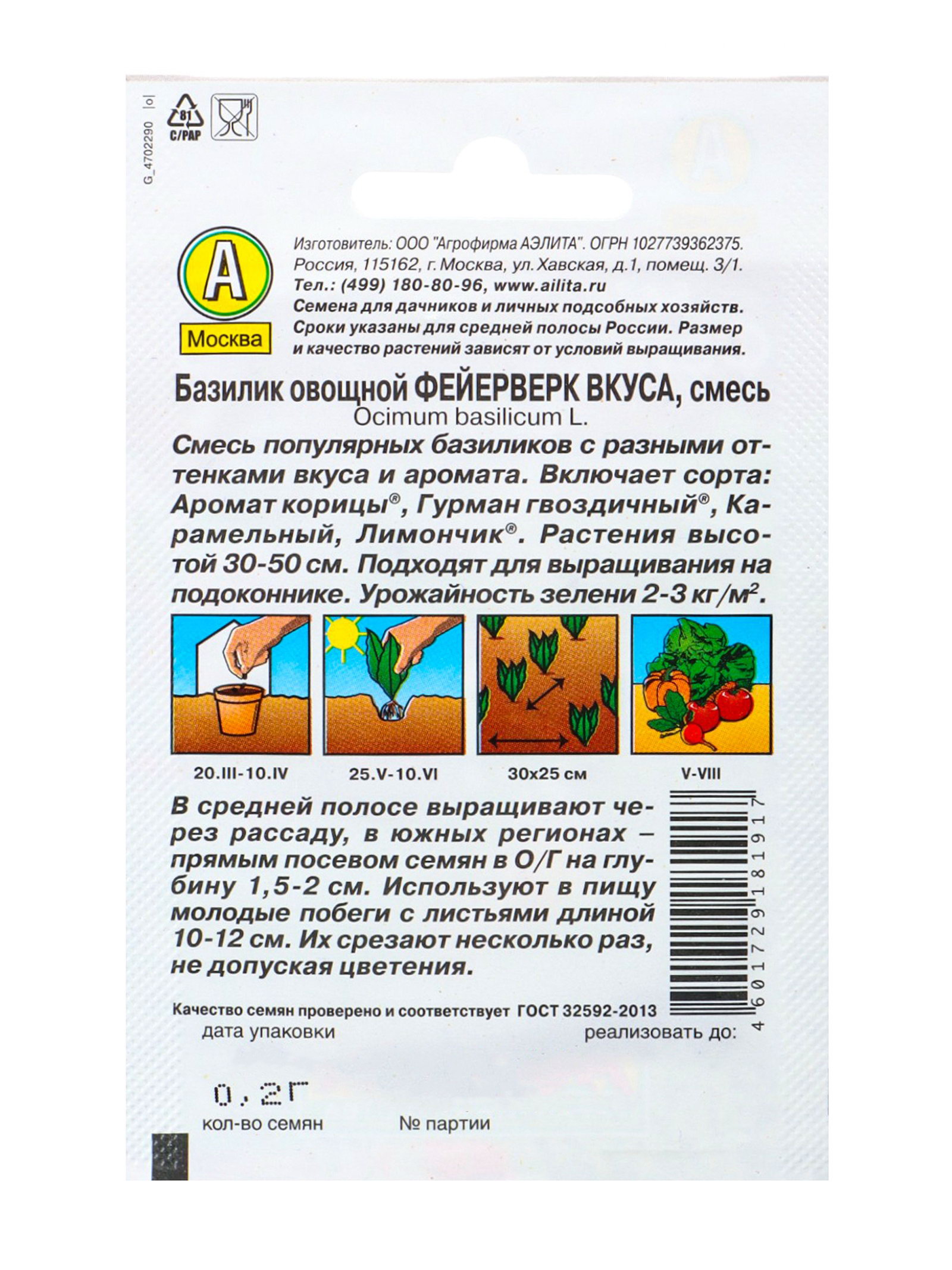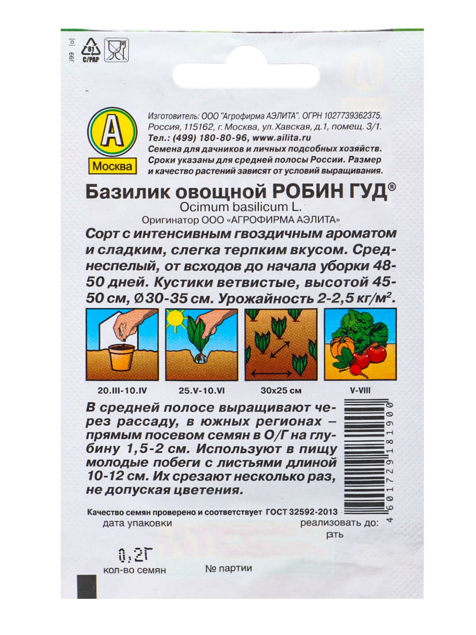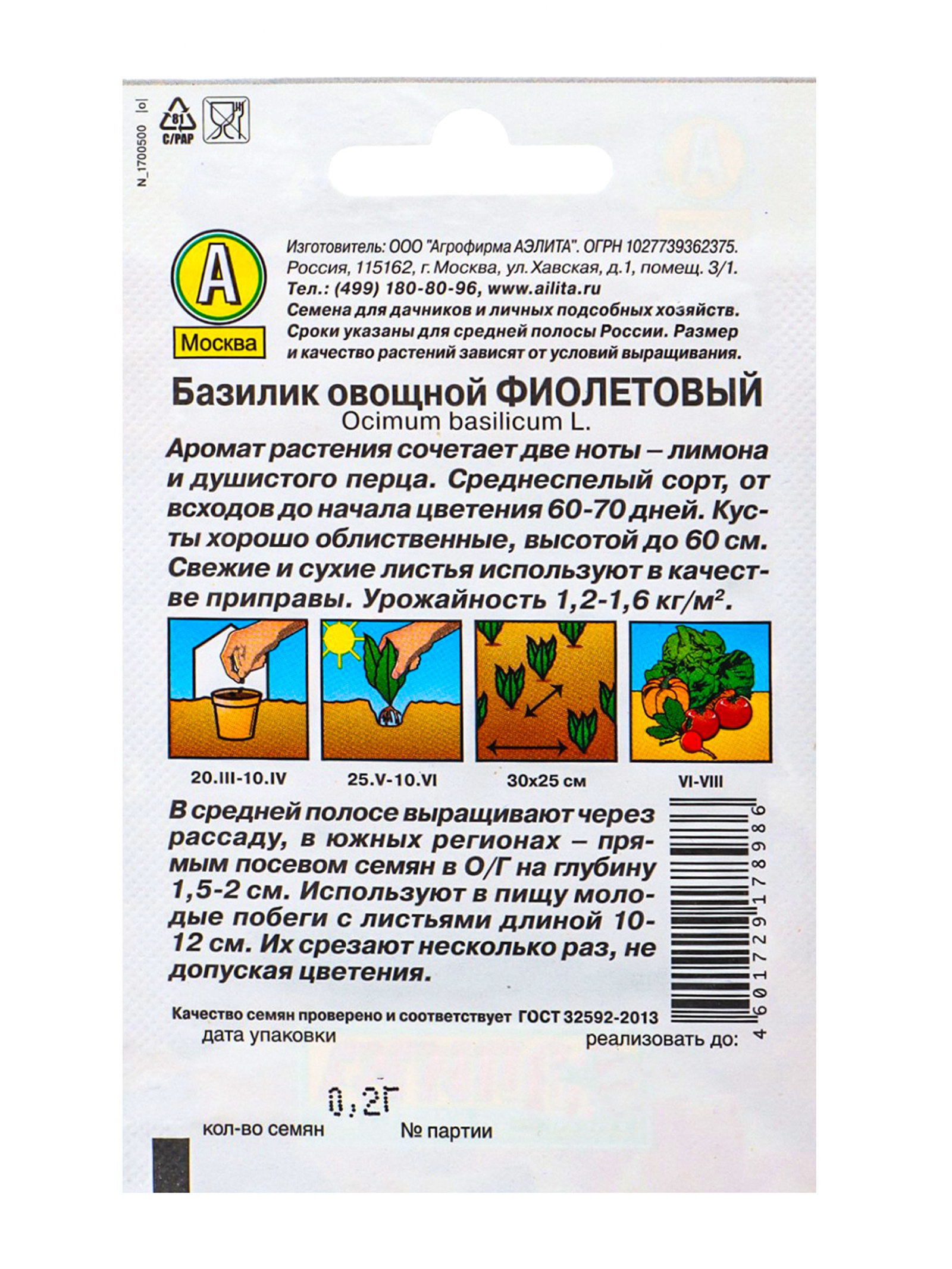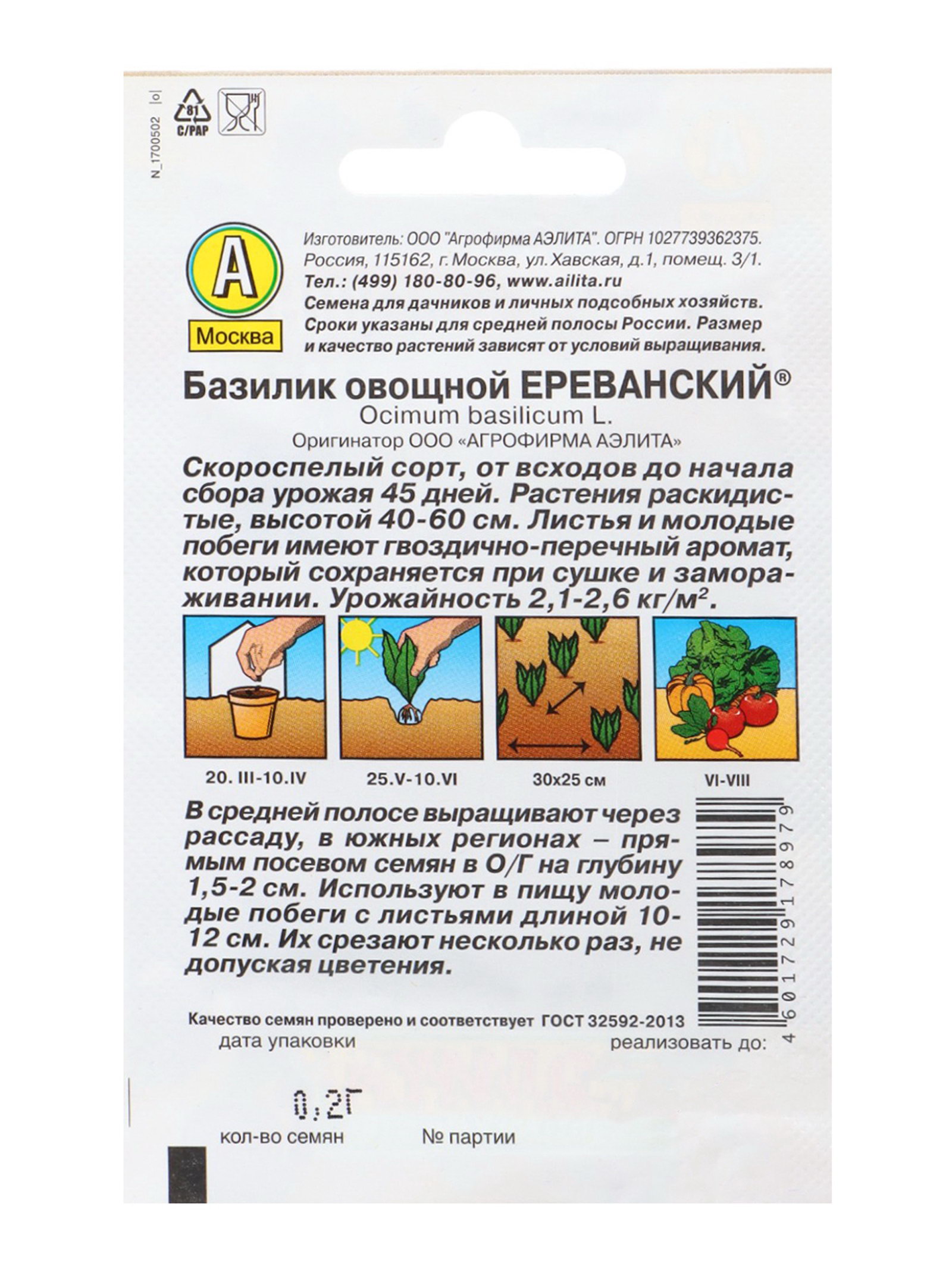 Место выращивания: Открытый грунт, Подоконник, балкон Размер упаковки: 8 x 0.8 x 12 см. tnved: 1209999900 Запрет реализации по сегментам: 00000000578 Вид: Базилик | ||
