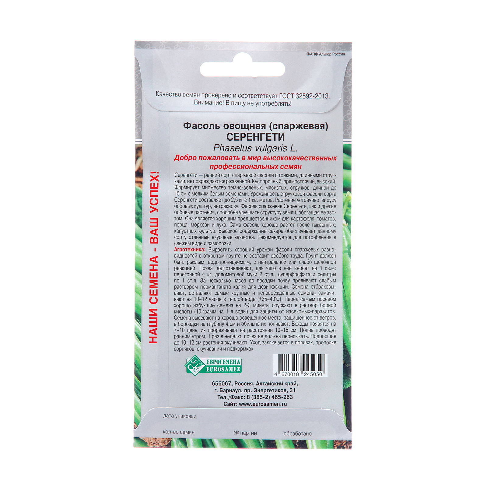Семена Фасоль овощная, спаржевая Серенгети, 15 шт, Евросемена, Россия