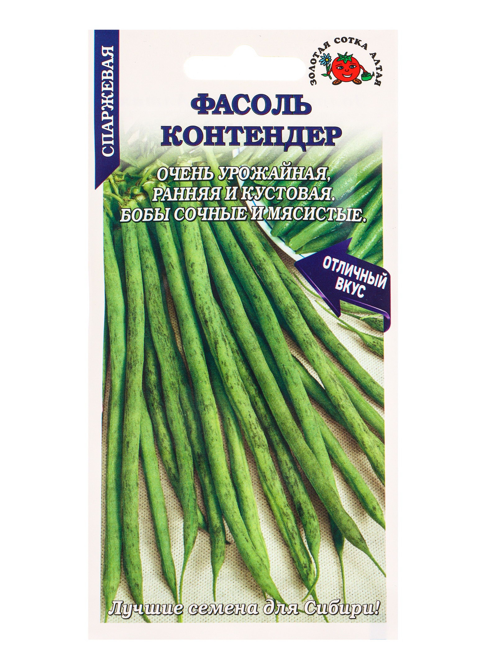 Семена Фасоль Контендер /Сотка/ 5г/ спарж. ранняя куст. 20см зеленые /*400, Золотая Сотка Алтая, Россия