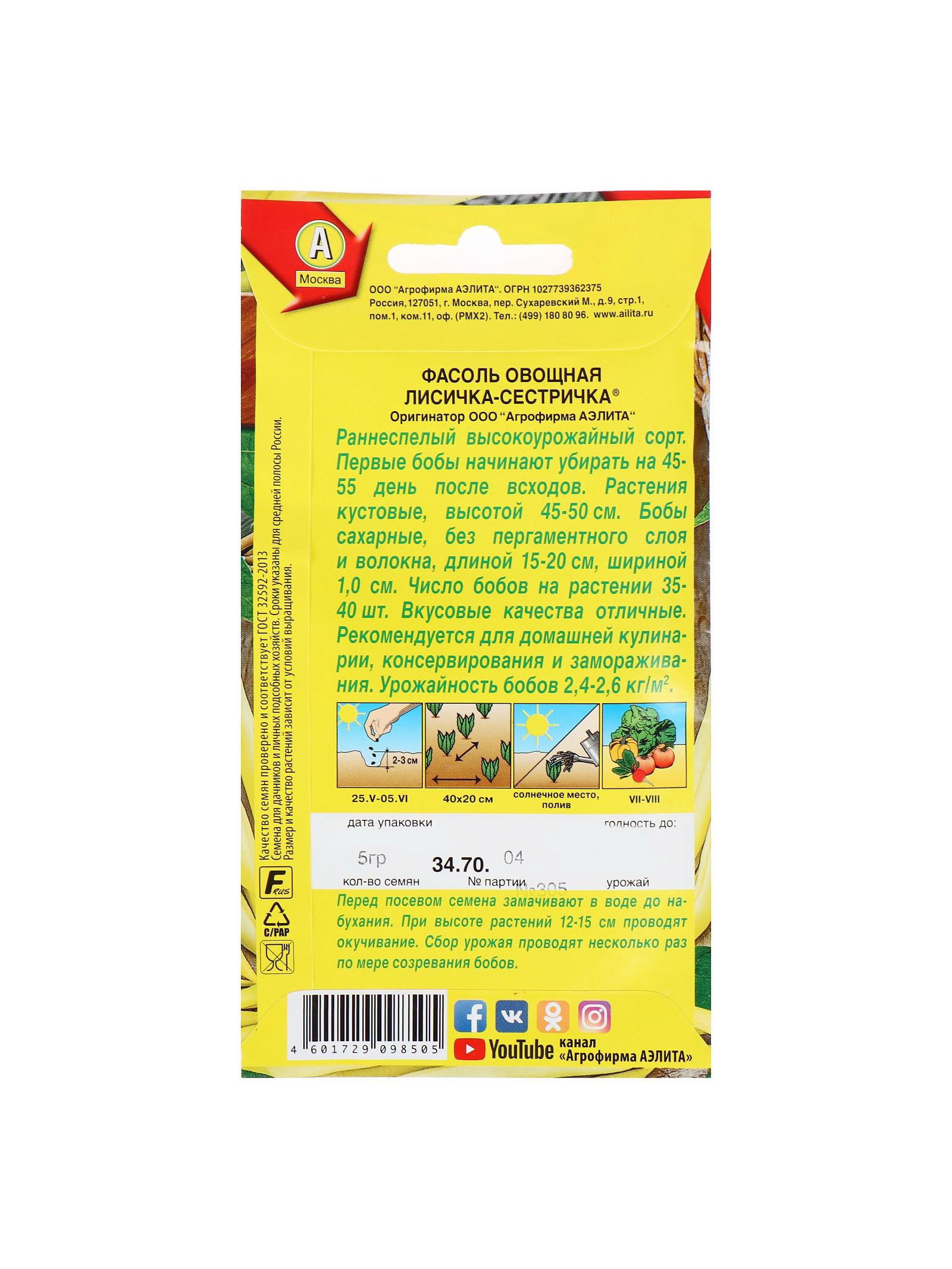 Набор семян Фасоль овощная "Лисичка-сестричка", 5 шт., 9x17x1 см., Мой выбор, Россия