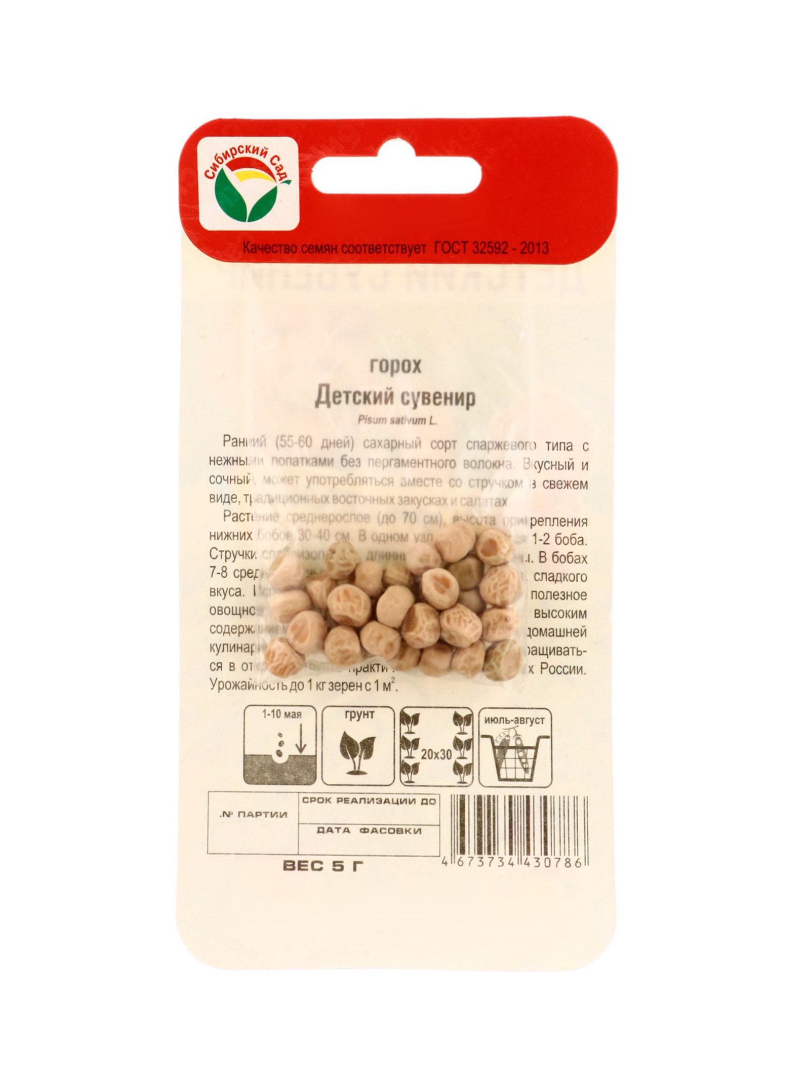 Семена Горох "Детский сувенир", 5 г, Сибирский сад, Россия