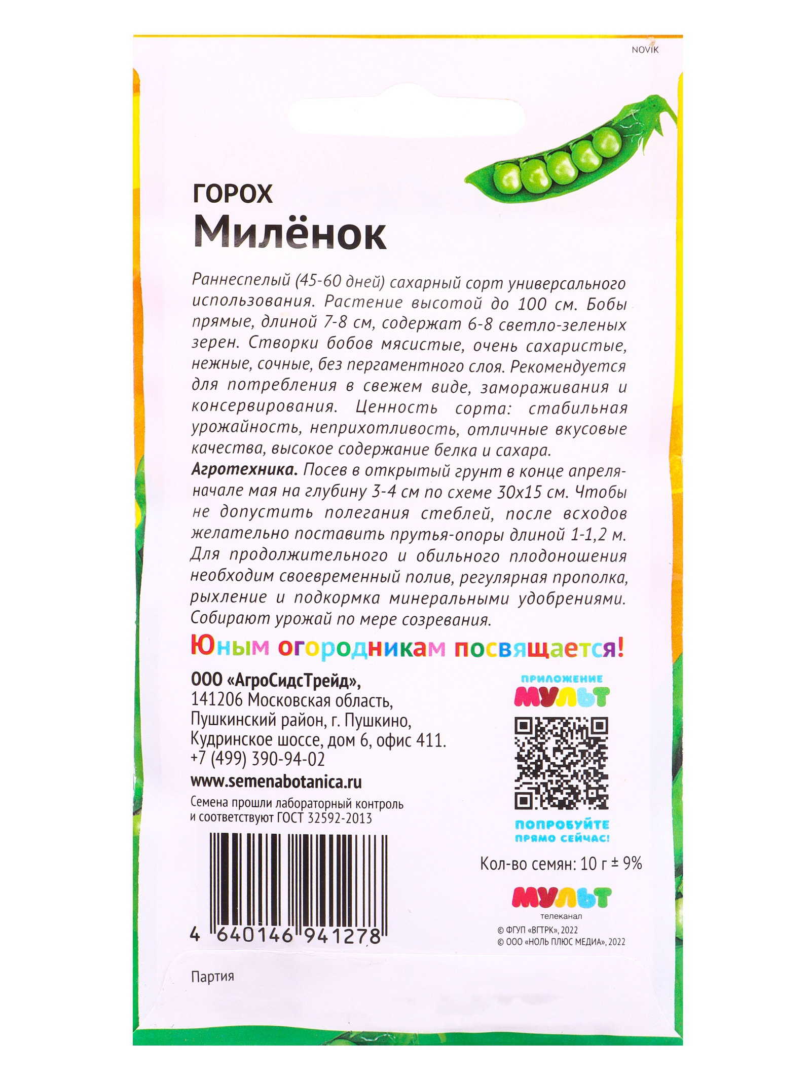 Семена Горох "Миленок", 10 г, "Ми-Ми-Мишки", Агросидстрейд, Россия