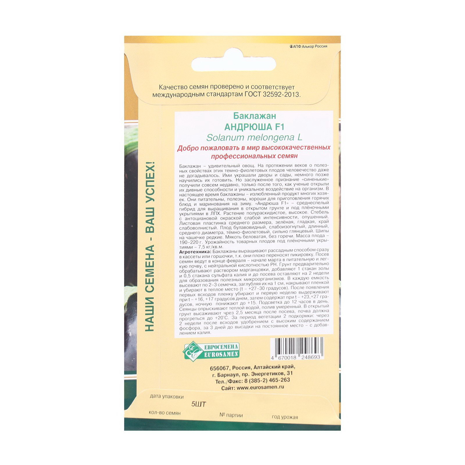 Семена баклажанов "Андрюша F1" среднеспелые, без горечи, Евросемена, Россия