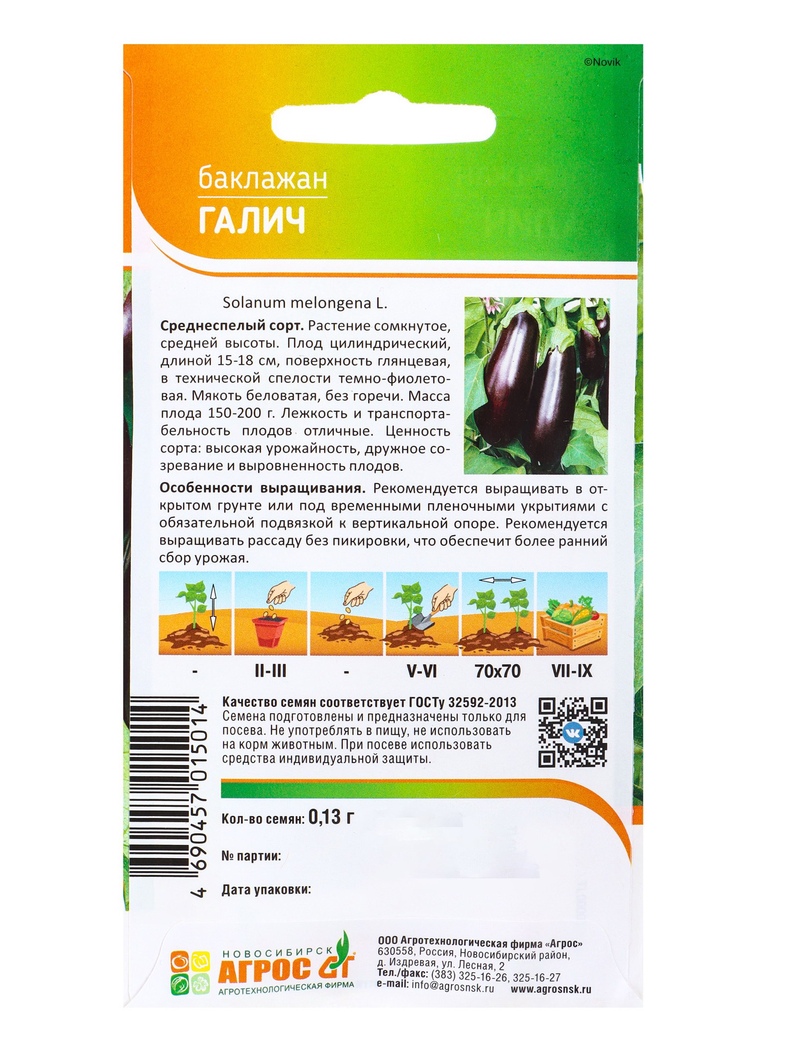 Семена Баклажан "Галич", 0.13 г, "Агрос", Агросс, Россия