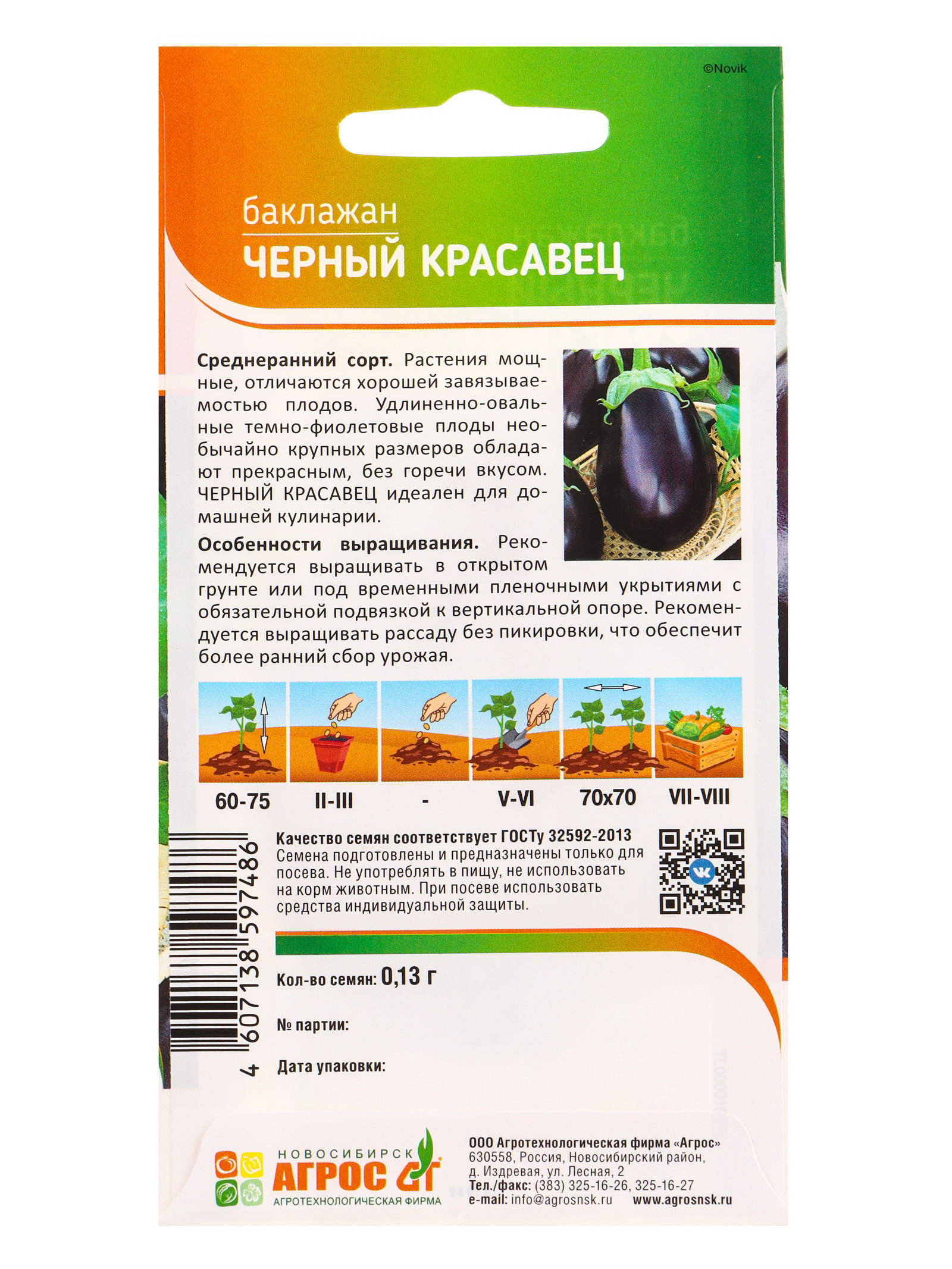 Семена Баклажан "Чёрный красавец", 0.13 г, "Агрос", Агросс, Россия