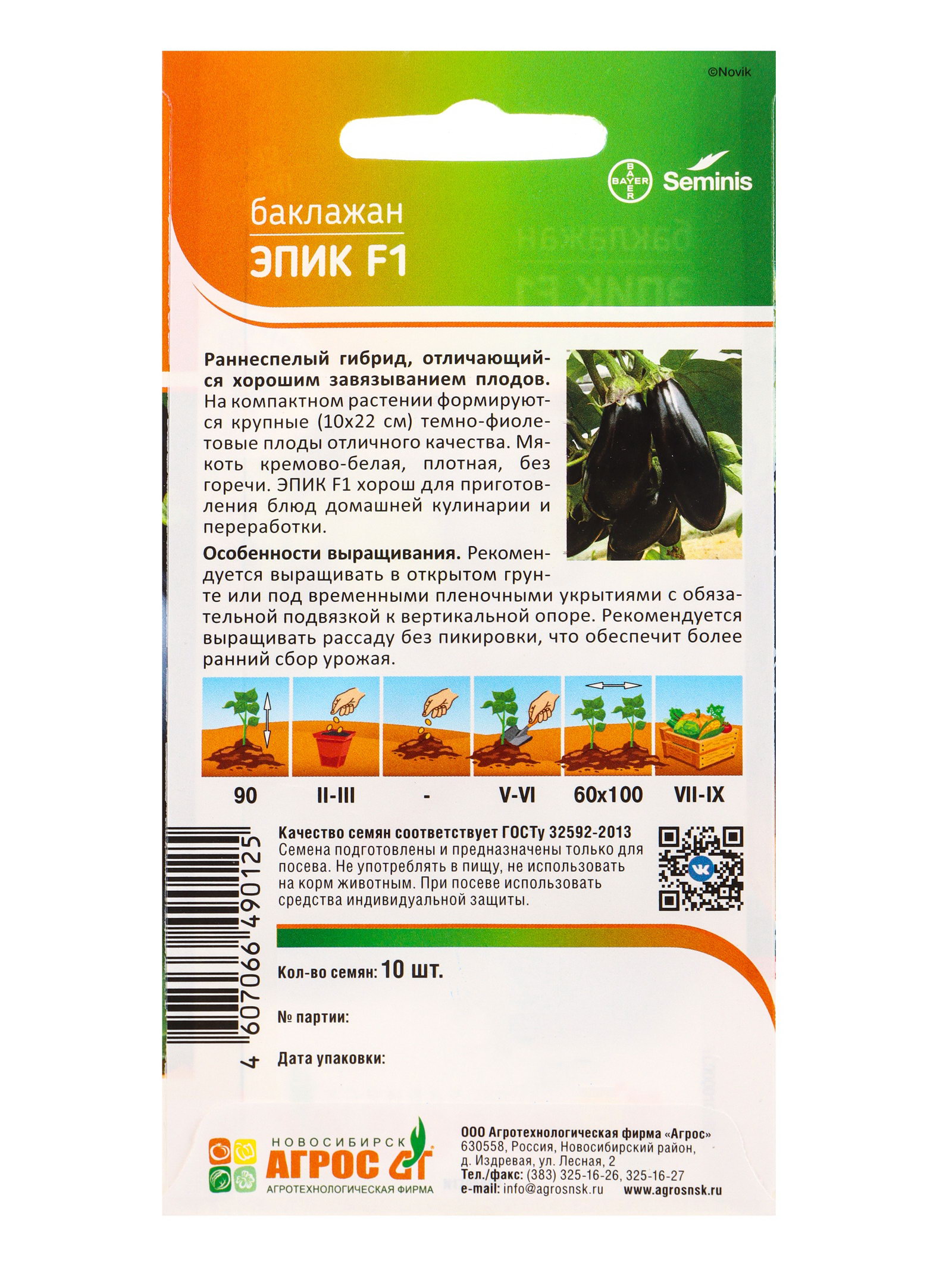 Семена Баклажан "Эпик" F1 10 шт, Агросс, Россия