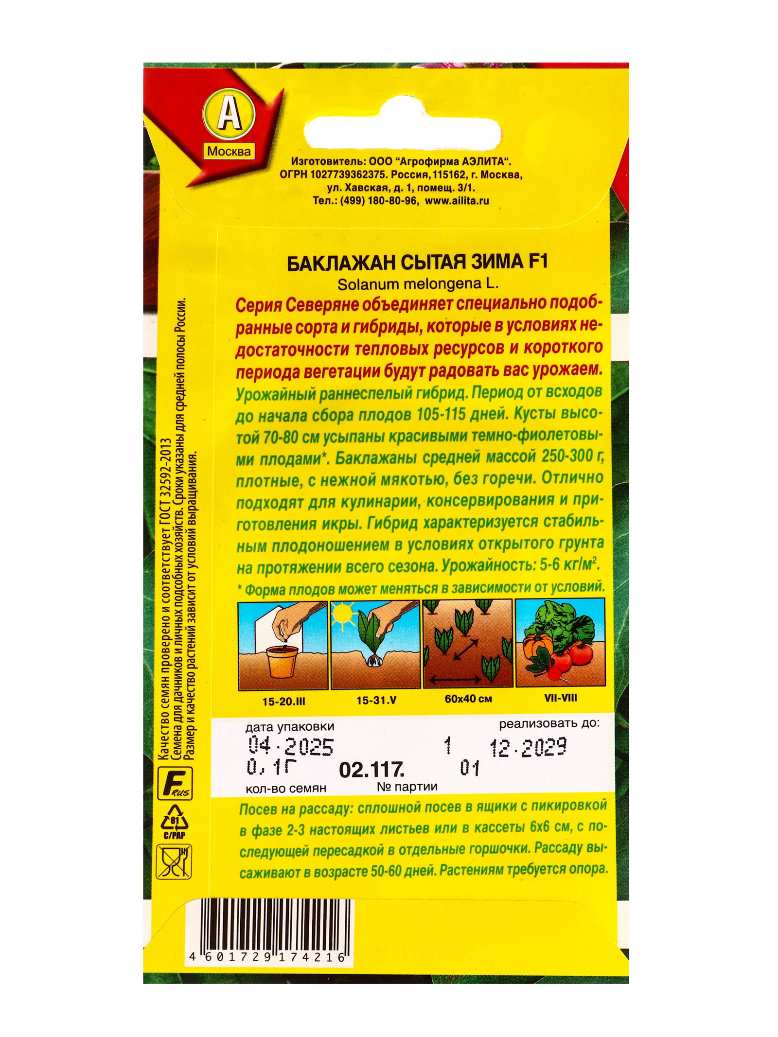 Семена Баклажан Сытая зима F1 Северяне, Ц/П,0.1 г, Агрофирма АЭЛИТА, Россия