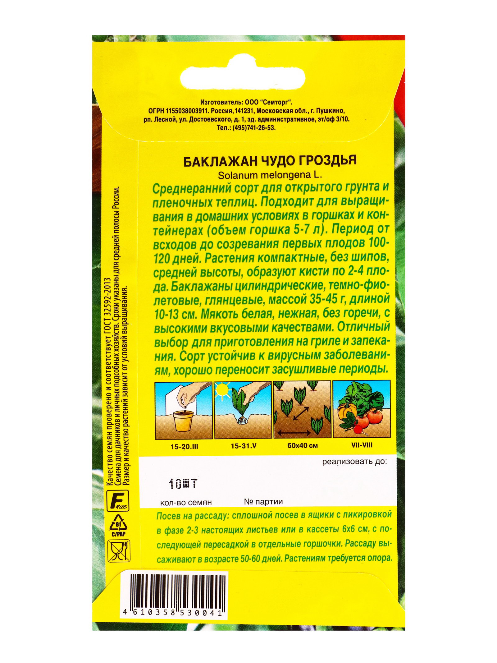 Семена Баклажан Чудо гроздья Семторг, Ц/П СТ,10 шт., Агрофирма АЭЛИТА, Россия