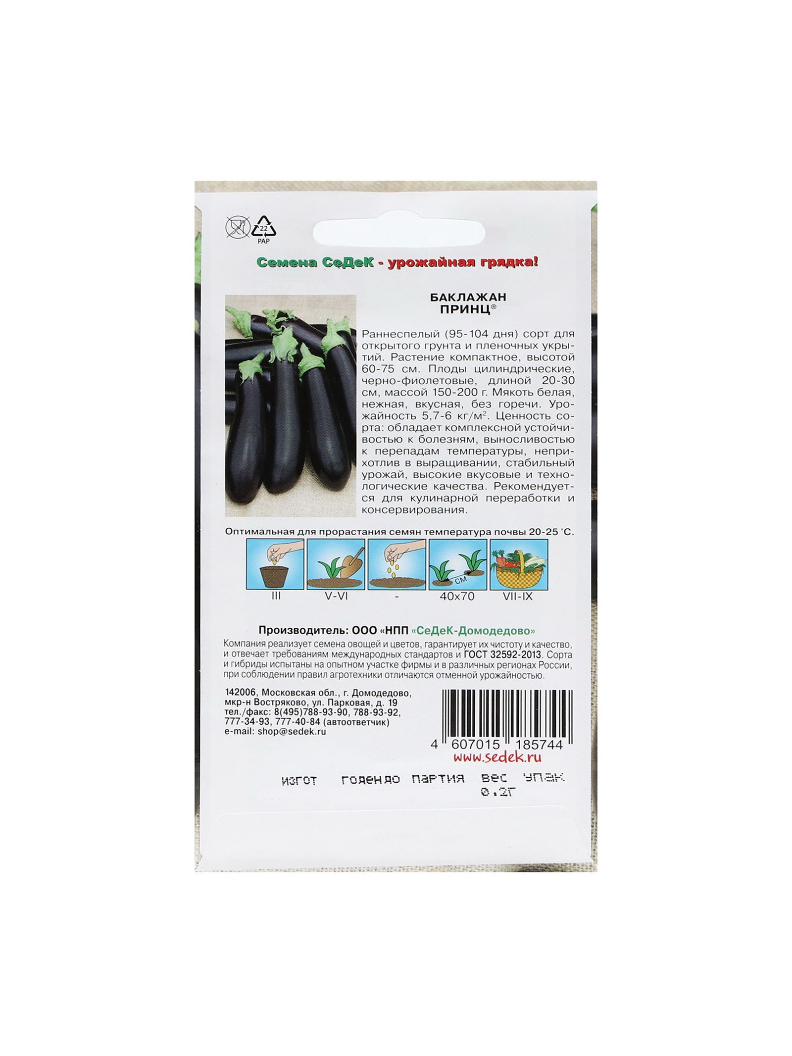 Набор семян Баклажан "Принц "0.2 г, 5 шт., 9x17x1 см., Мой выбор, Россия