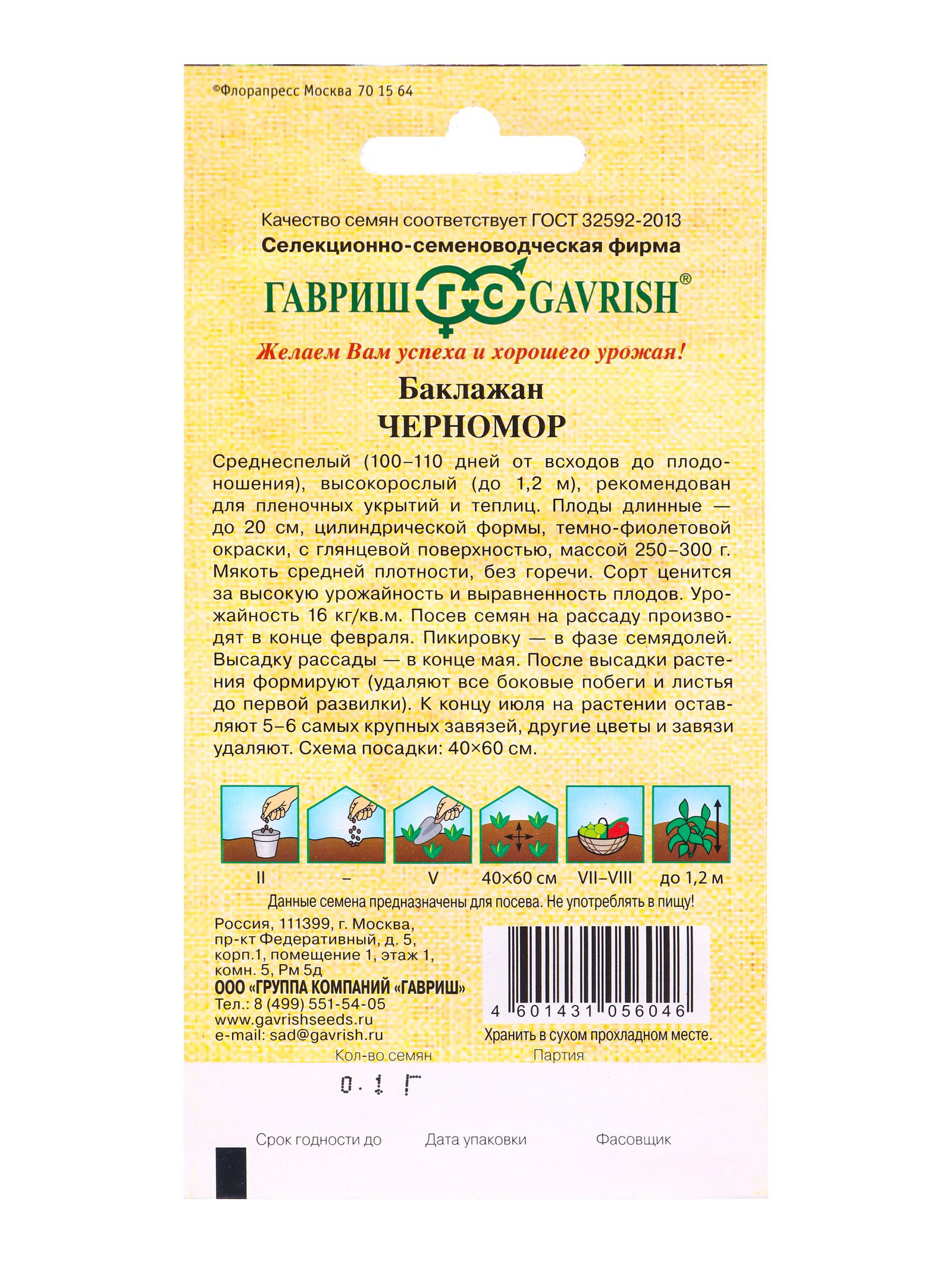 Семена Баклажан "Черномор", 0.1 г, Гавриш, Россия