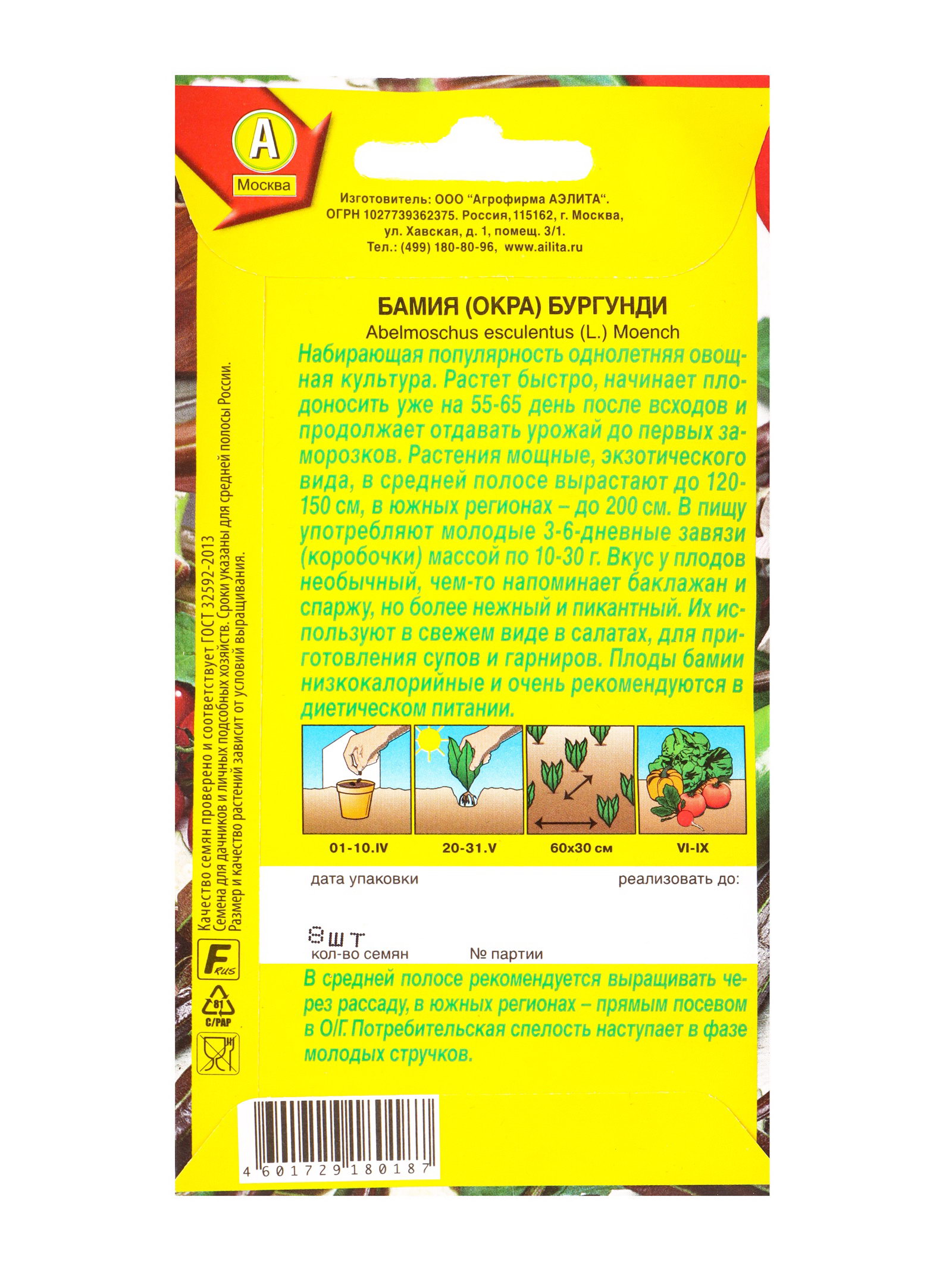 Семена Бамия Бургунди, Ц/П,8 шт., Агрофирма АЭЛИТА, Россия