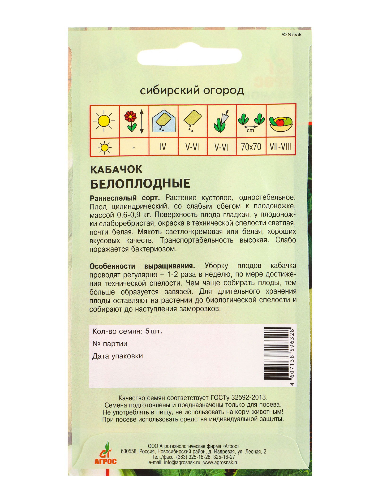 Семена Кабачок "Белоплодные" 5 шт, Агросс, Россия