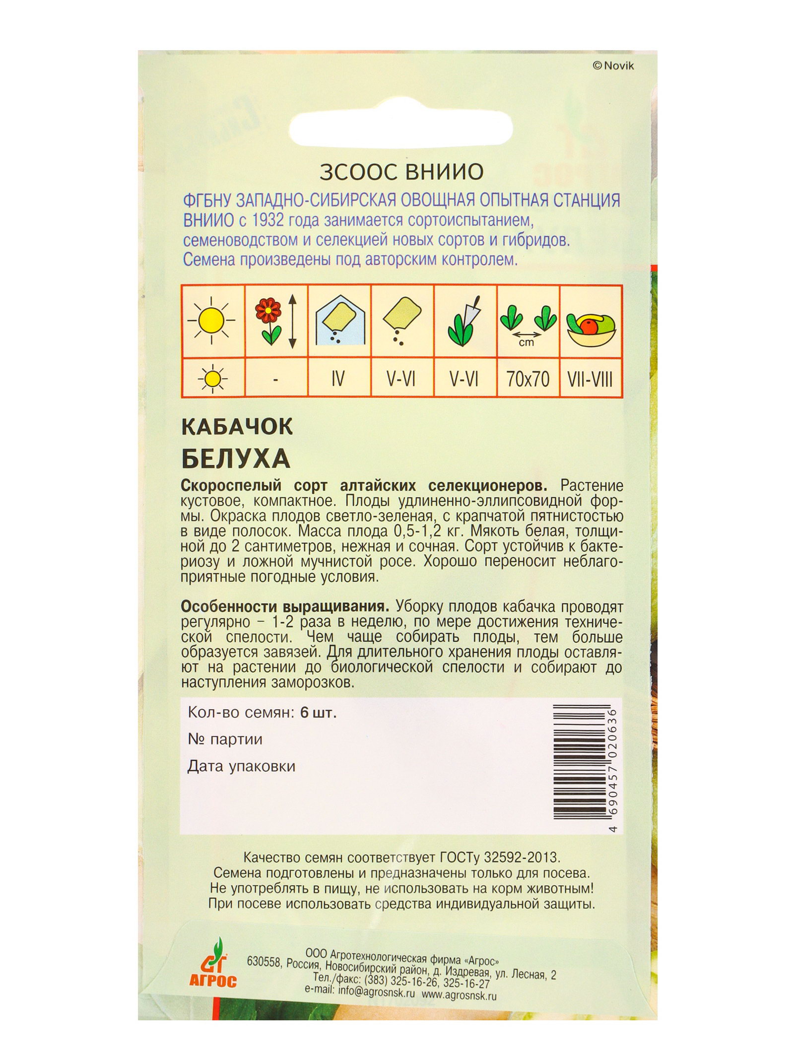 Семена Кабачок "Белуха" 6 шт, Агросс, Россия