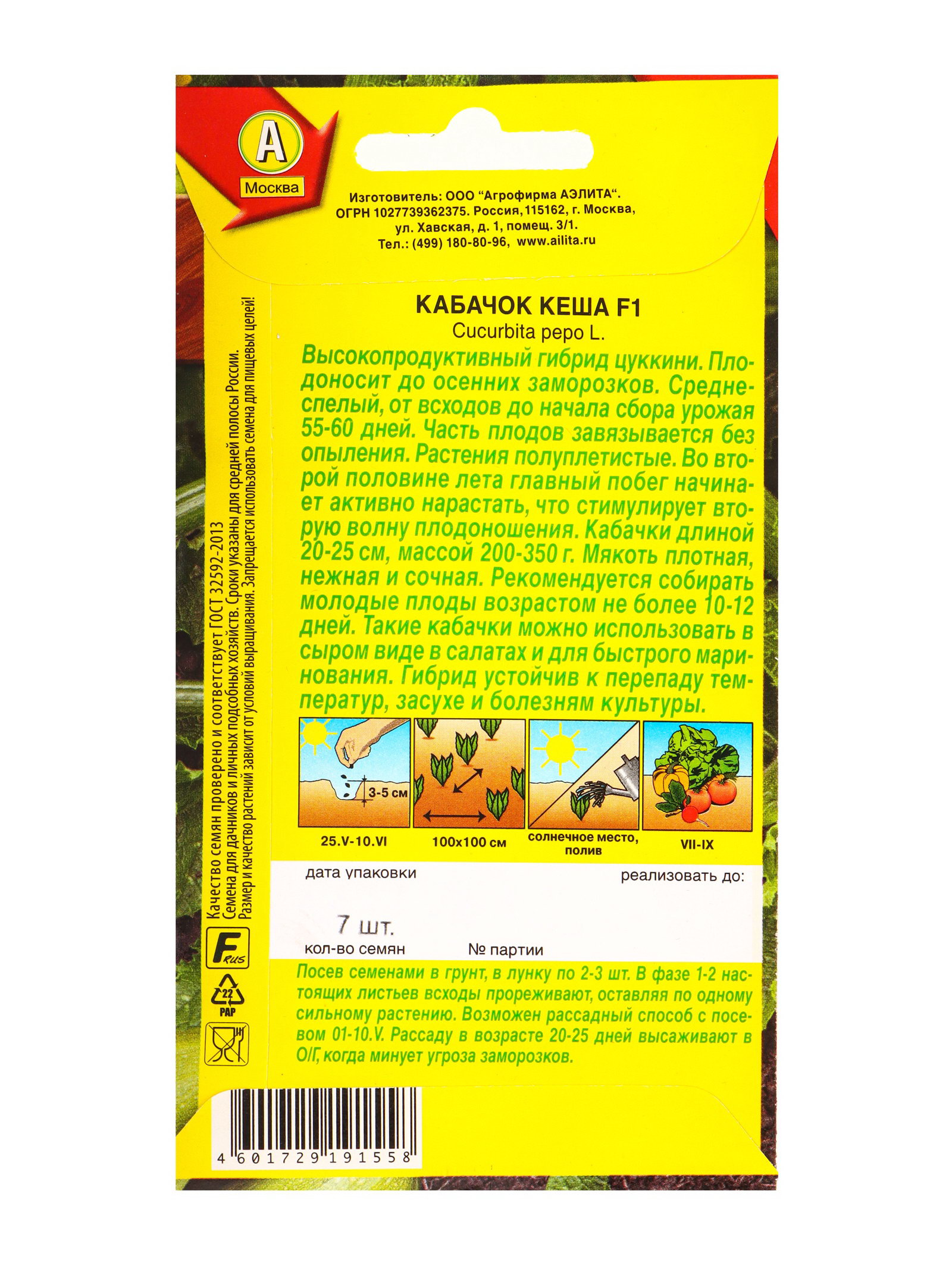 Семена Кабачок цуккини Кеша F1, Ц/П,7 шт., Агрофирма АЭЛИТА, Россия