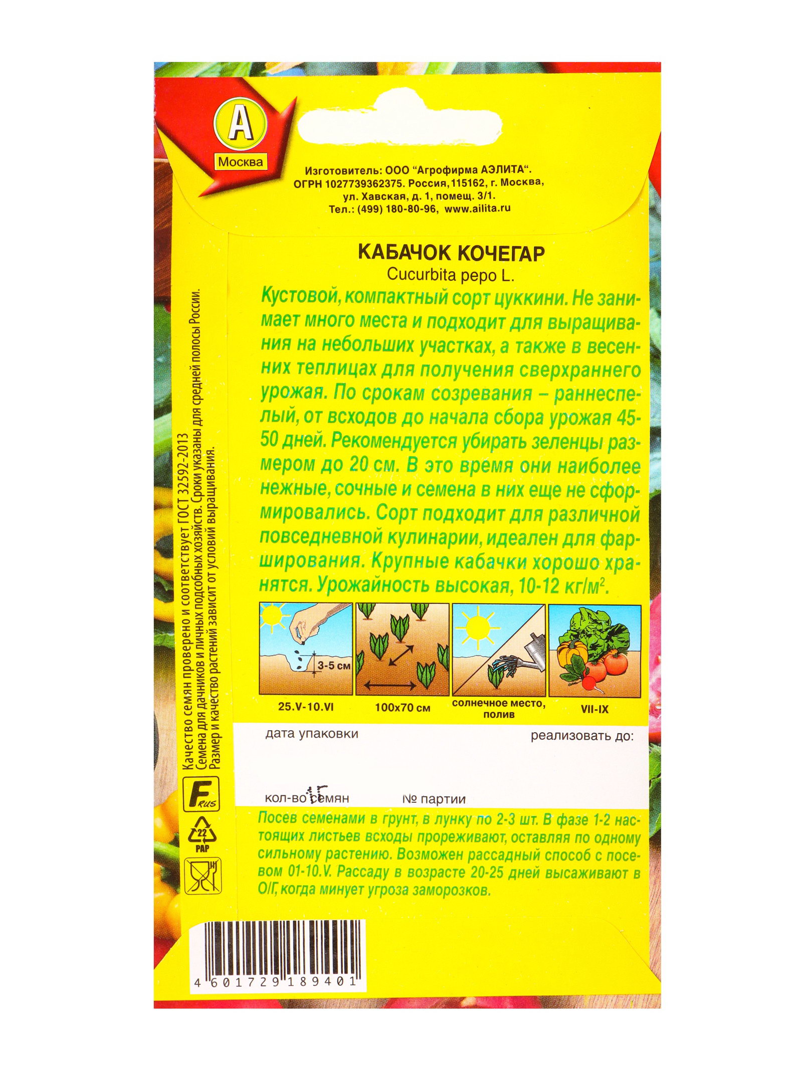 Семена Кабачок цуккини Кочегар, Ц/П,1 г, Агрофирма АЭЛИТА, Россия