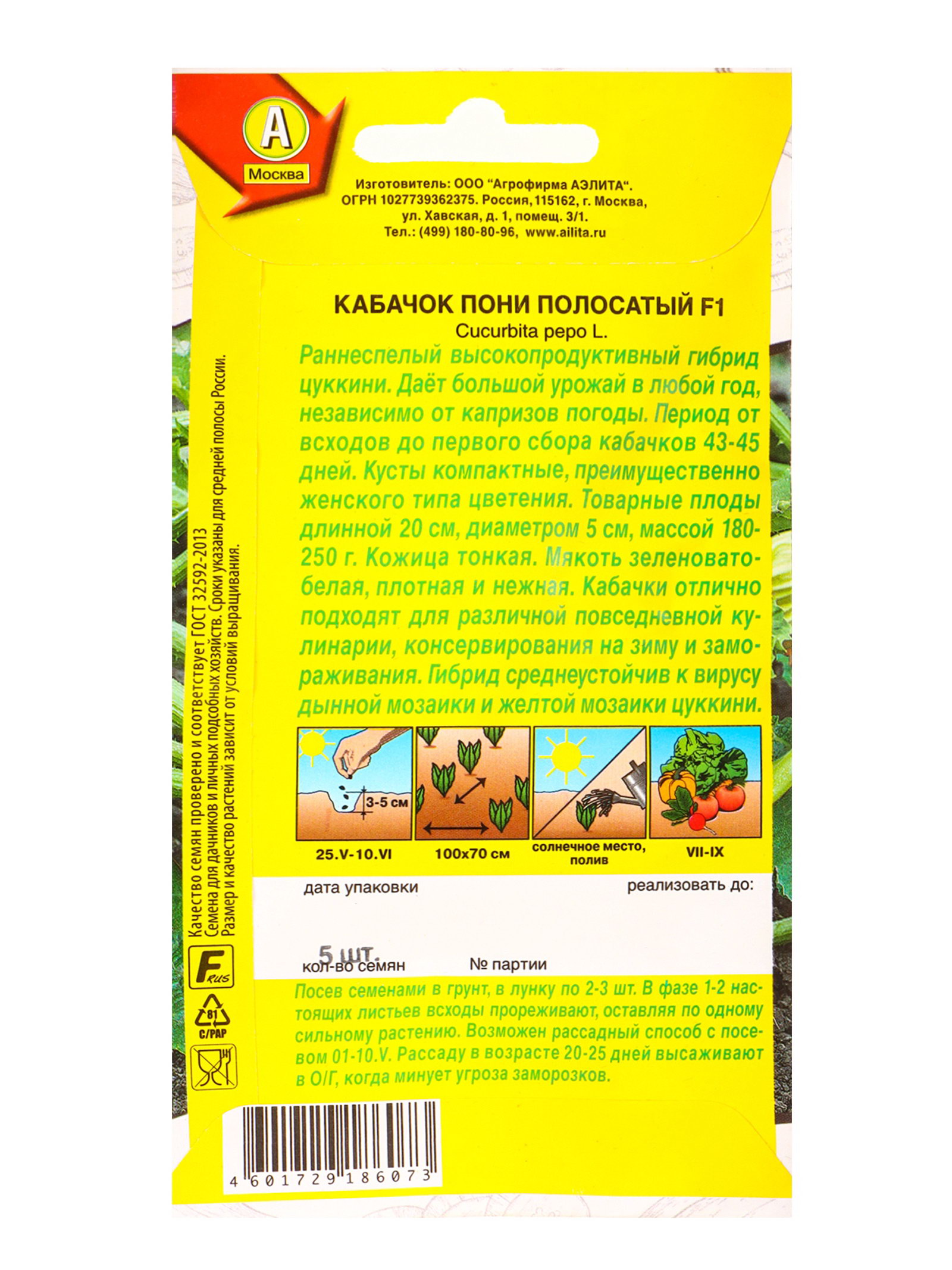 Семена Кабачок цуккини Пони полосатый F1 Мир высокого урожая, Ц/П,5 шт., Агрофирма АЭЛИТА, Россия