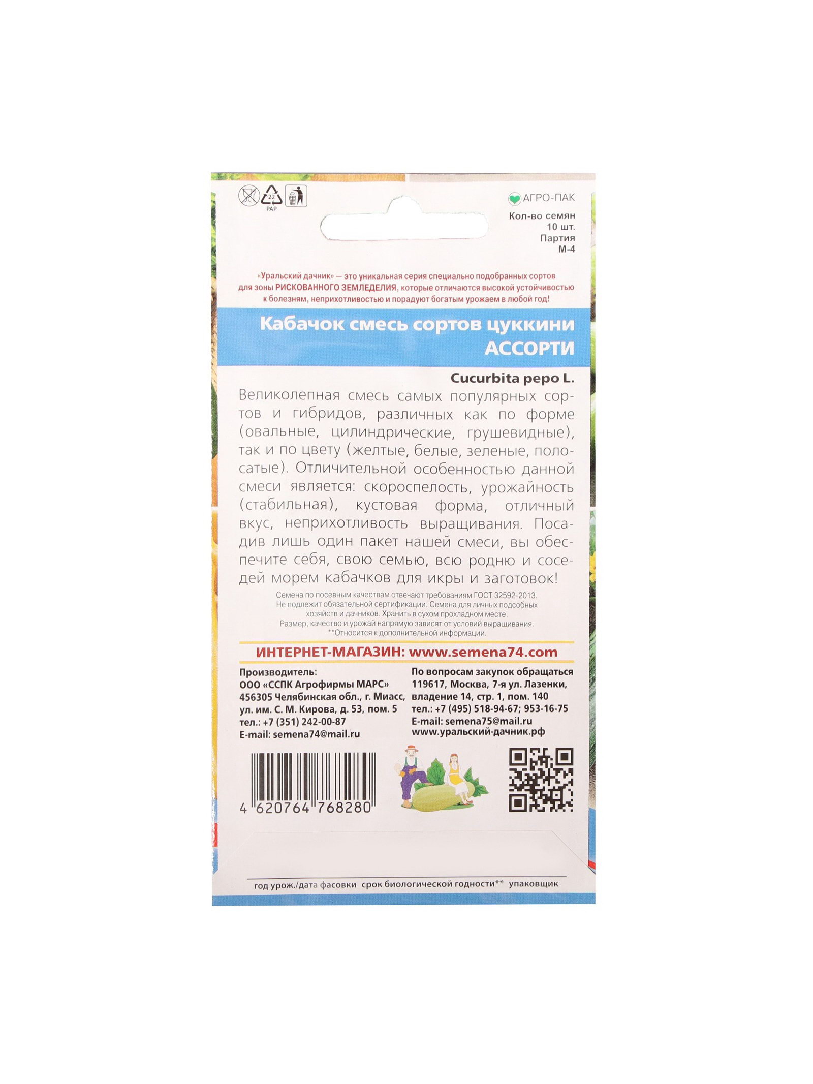 Набор семян Кабачок "Ассорти Смесь кабачков", 5 шт., 9x17x1 см., Мой выбор, Россия
