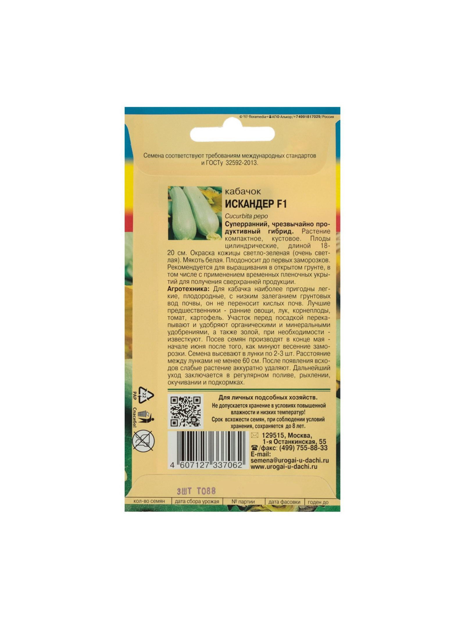 Набор семян Кабачок "Искандер", 4 шт., 9x17x1 см., Мой выбор, Россия