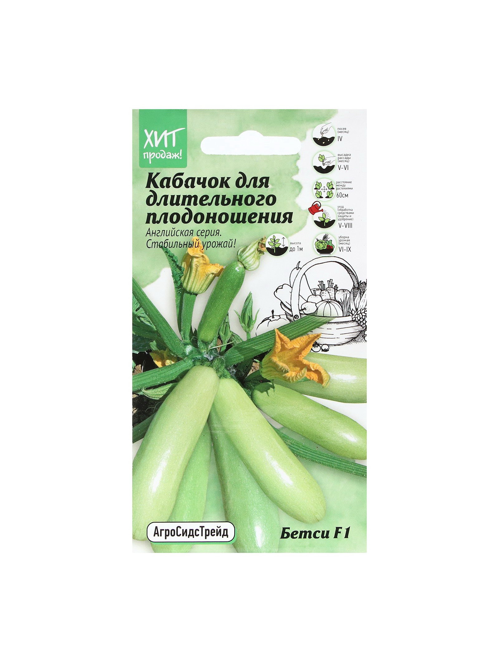 Набор семян Кабачок F1 для длительного плодоношения "Бетси", 5 шт., 9x17x1 см., Мой выбор, Россия