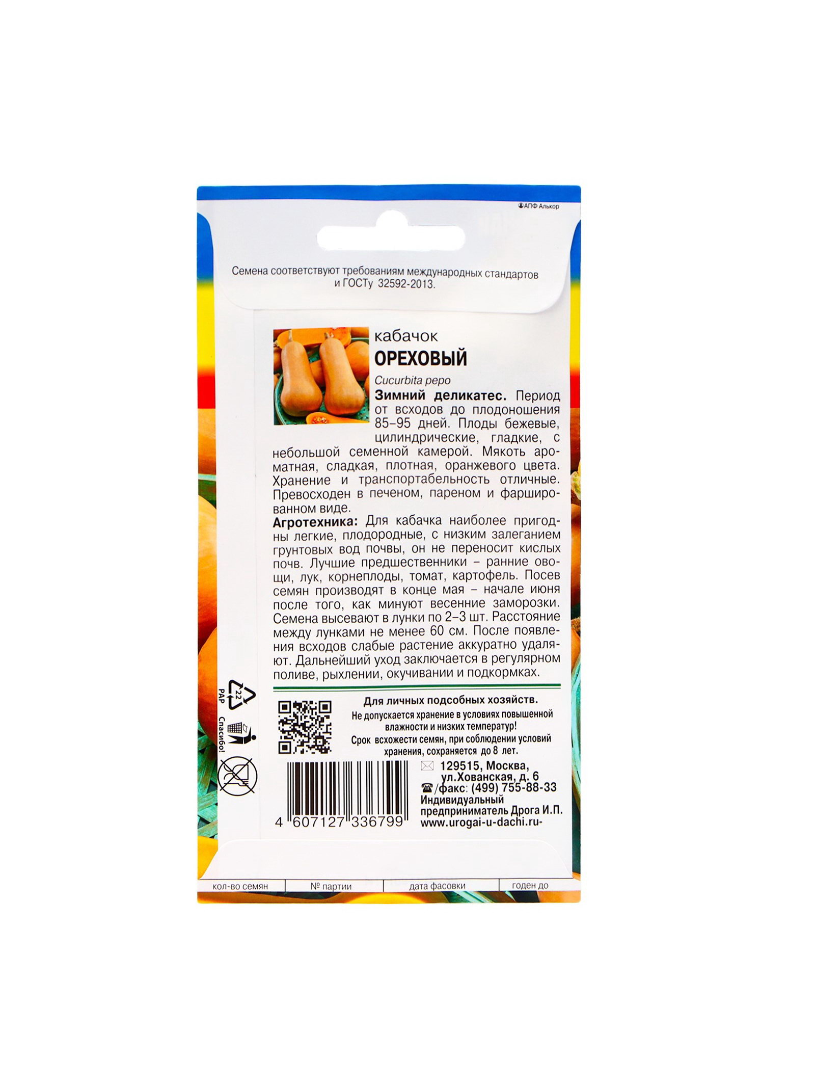 Набор семян Кабачок "ОРЕХОВЫЙ", 5 шт., 9x17x1 см., Мой выбор, Россия
