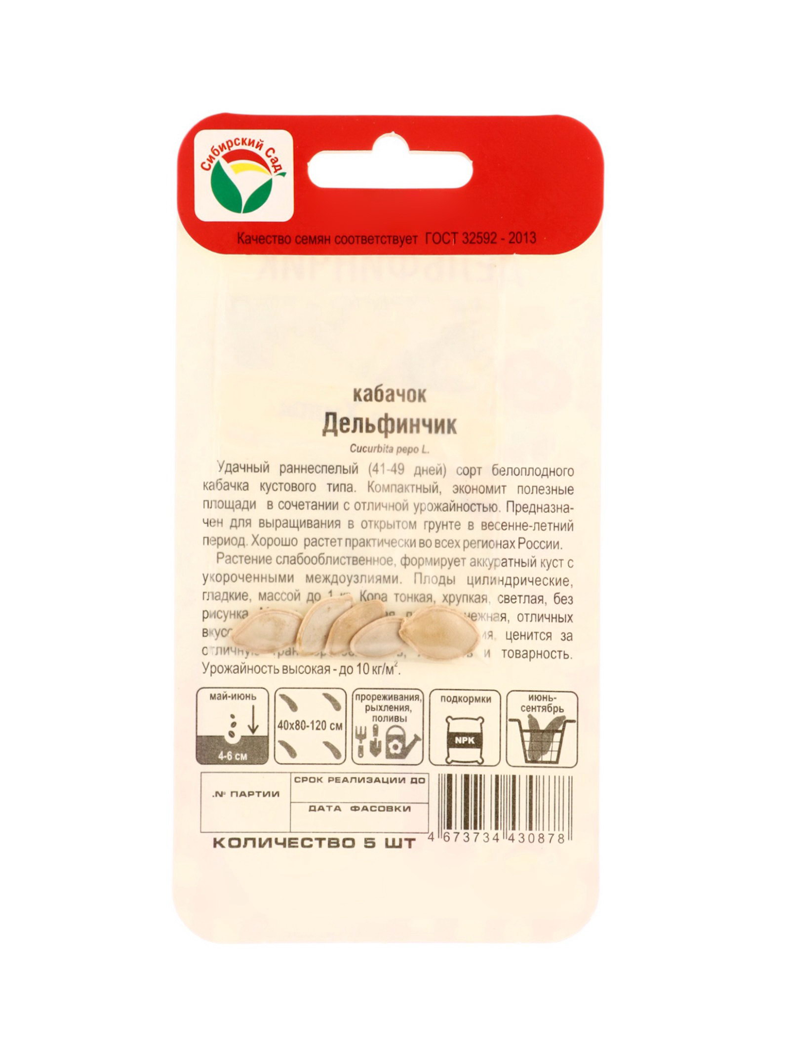 Семена Кабачок "Дельфинчик", 5 шт., Сибирский сад, Россия
