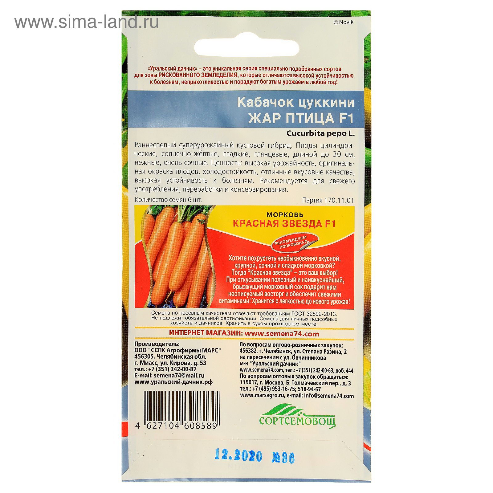 Семена Кабачок "Жар Птица", F1, 6 шт., Уральский Дачник, Россия