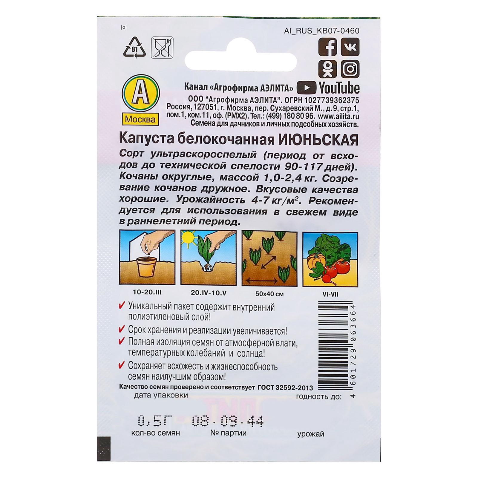 Семена Капуста белокочанная "Июньская" "Лидер", 0.5 г, Агрофирма АЭЛИТА, Польша