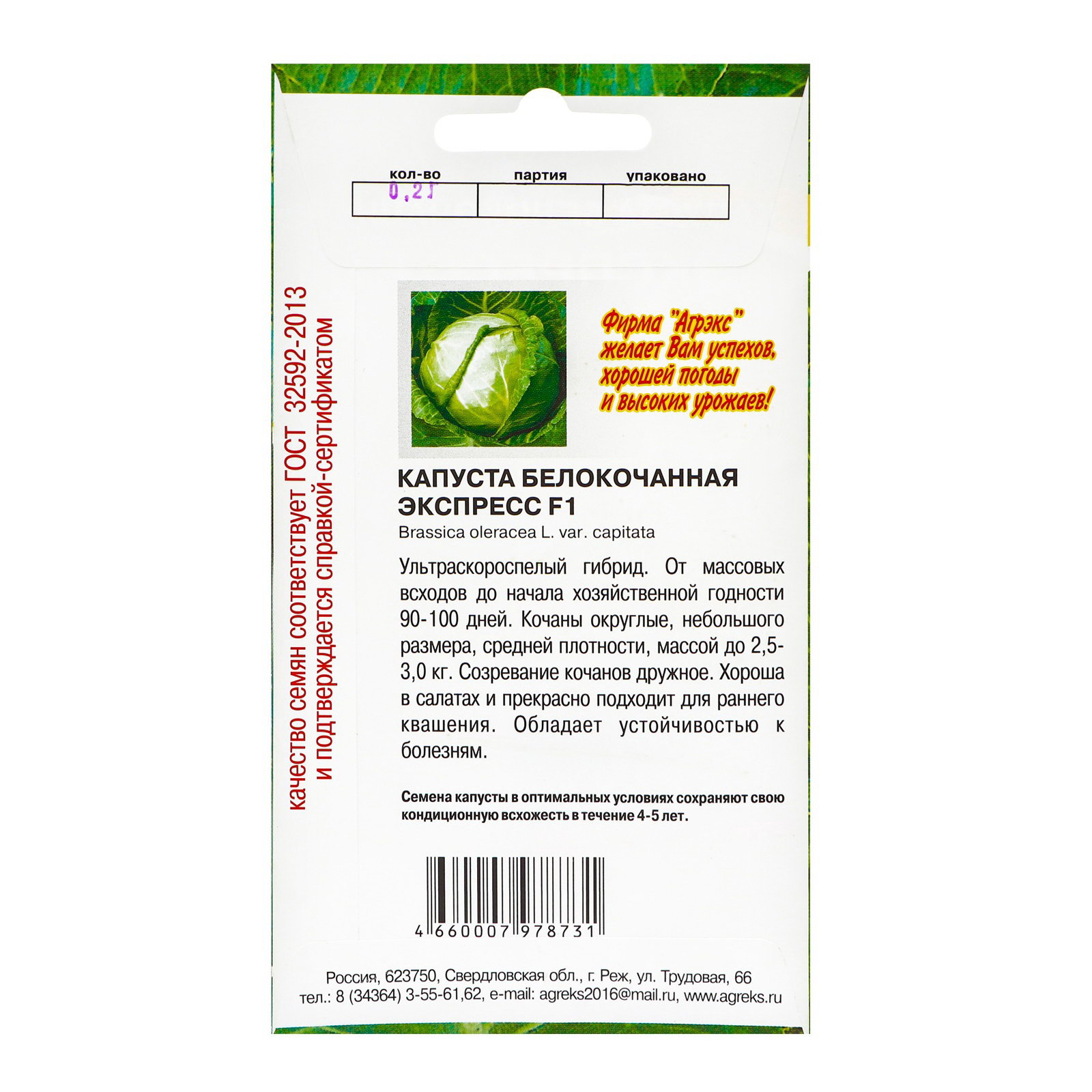 Семена Капуста б/к "Экспресс", 0.2 г, АГРЭКС, Россия