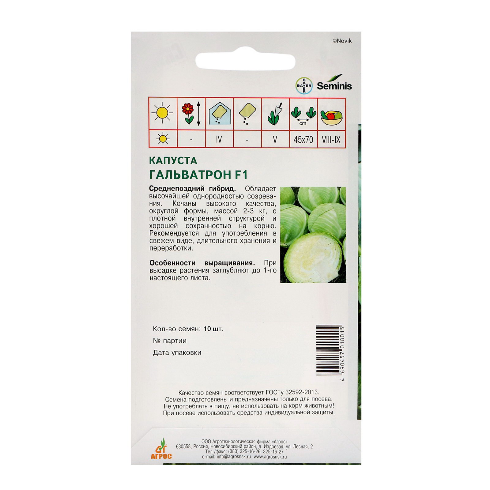 Посев на рассаду: Апрель, Март Посев (посадка) в грунт: Июнь, Май Размер упаковки: 8 x 0.2 x 15 см. Температурное ограничение: Нет Сроки созревания: Среднепоздний Место выращивания: Открытый грунт Вид капусты: Белокачанная Сорт или гибрид: Гибрид F1 Упаковка: Цветная Применение: Универсальное Вид: Горошины Вид: Горошины tnved: 1209918000 Семена белокочанной капусты "Гальватрон" F1 предназначены для тех, кто хочет получить качественный и экологичный урожай в открытом грунте. Это среднепоздний гибрид, который прекрасно впишется в ваш огород и долго сохраняет свои исходные качества. Преимущества