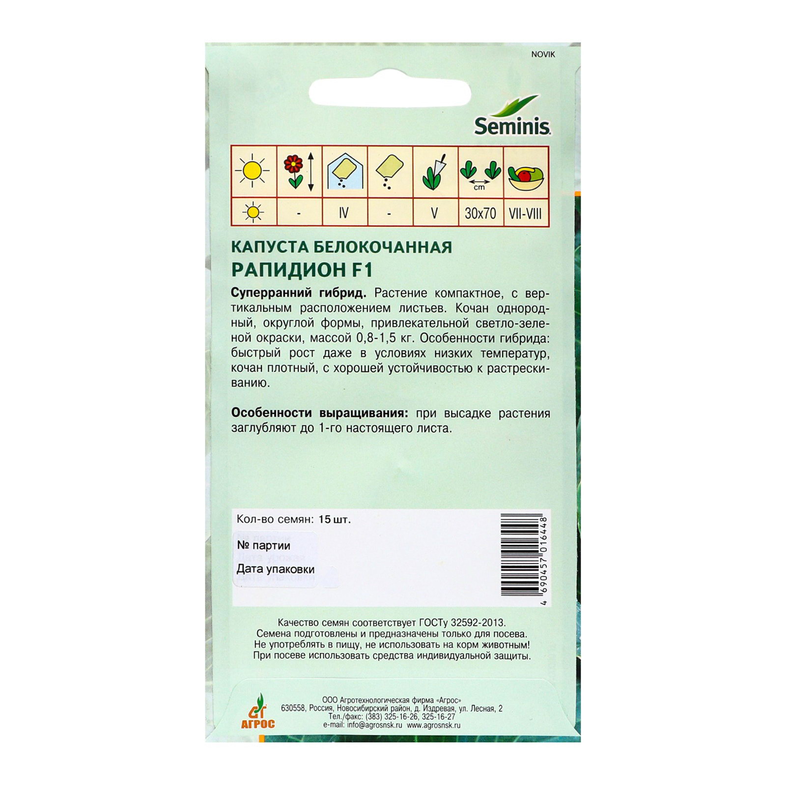 Семена Капуста белокочанная, "Рапидион", F1, 15 шт., Seminis, "Агрос", Агросс, Чили